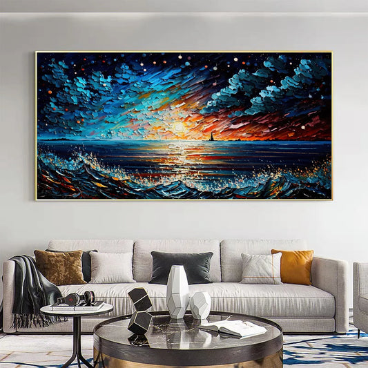 Meer und Wellen Nachthimmel Ölgemälde Handmade