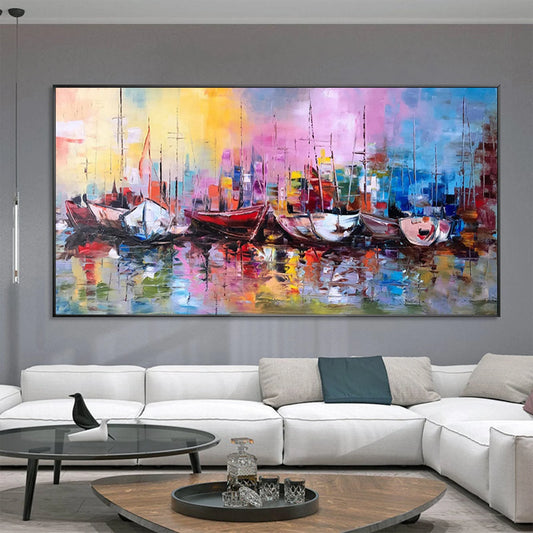 Schiff im Sonnenuntergang Ölgemälde Handmade