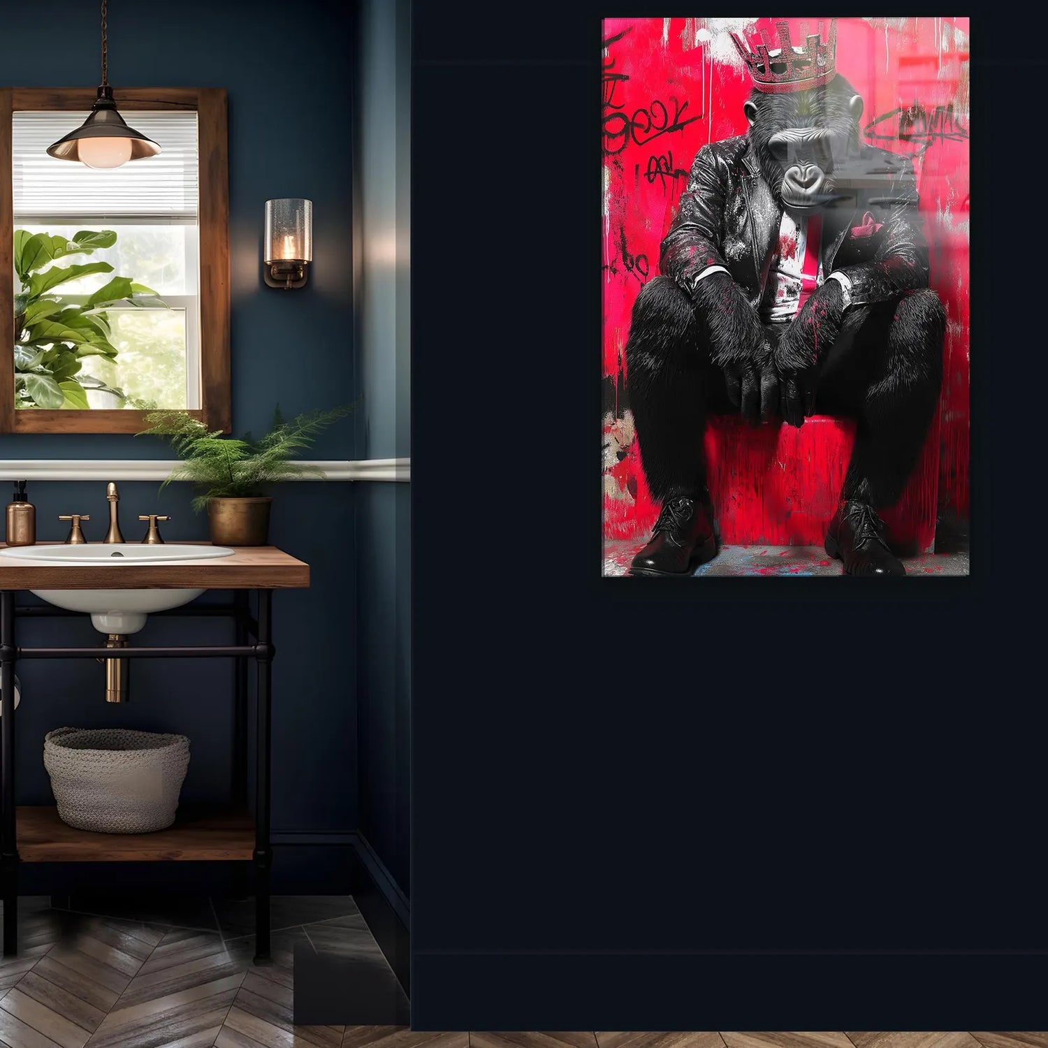 Affe mit Krone Rote Wand