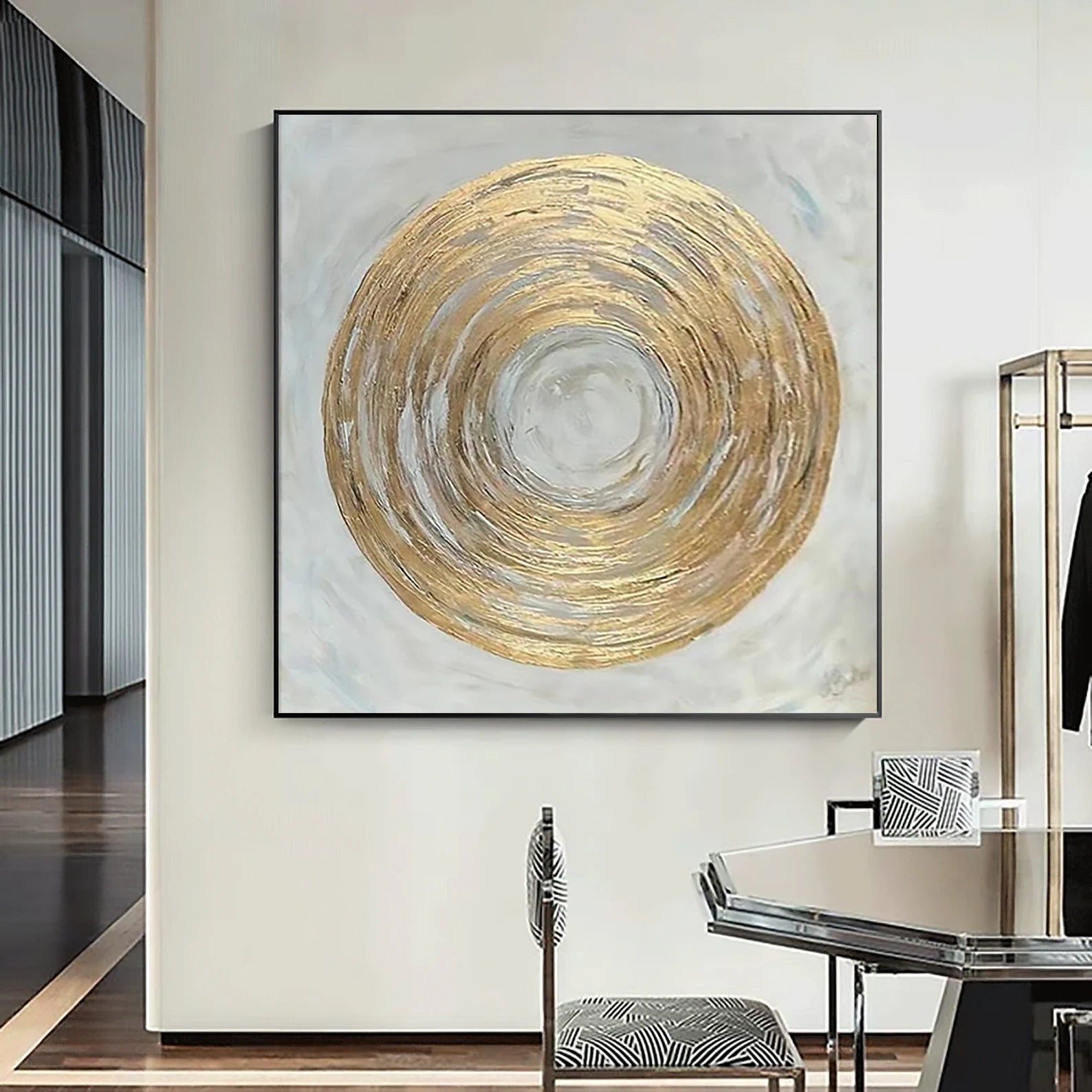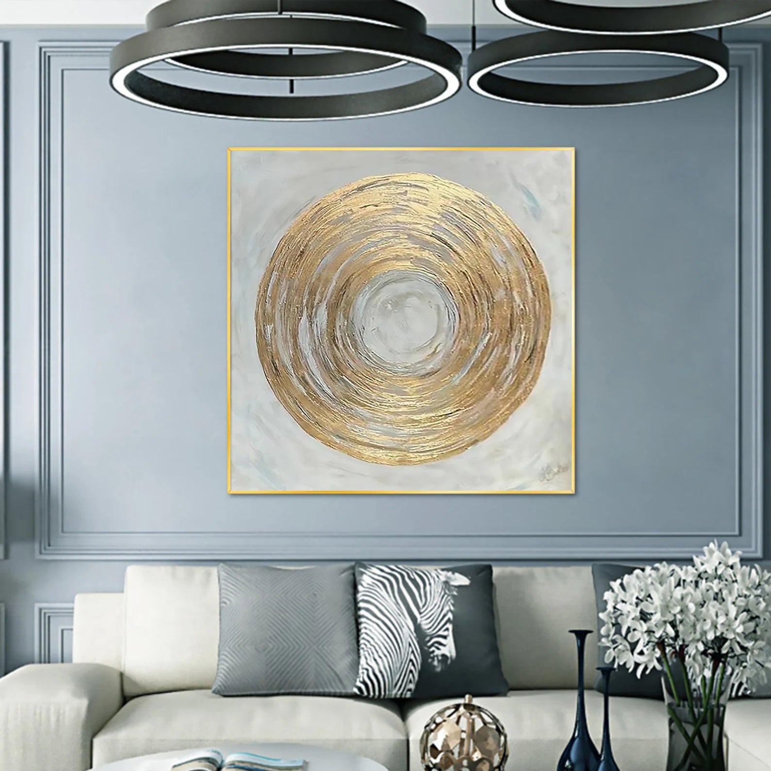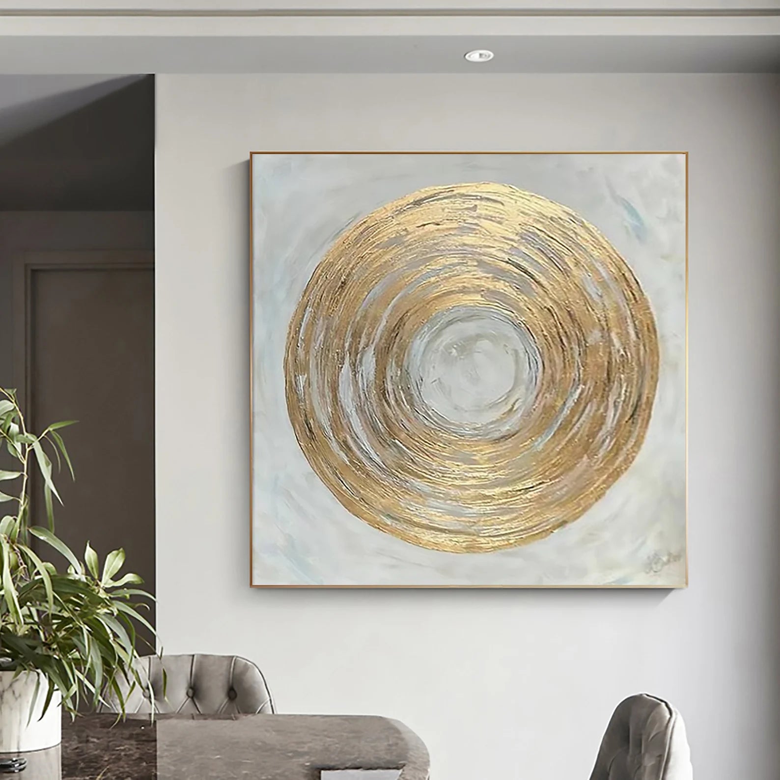 The Golden Circle on Gray Oil Painting Handmade