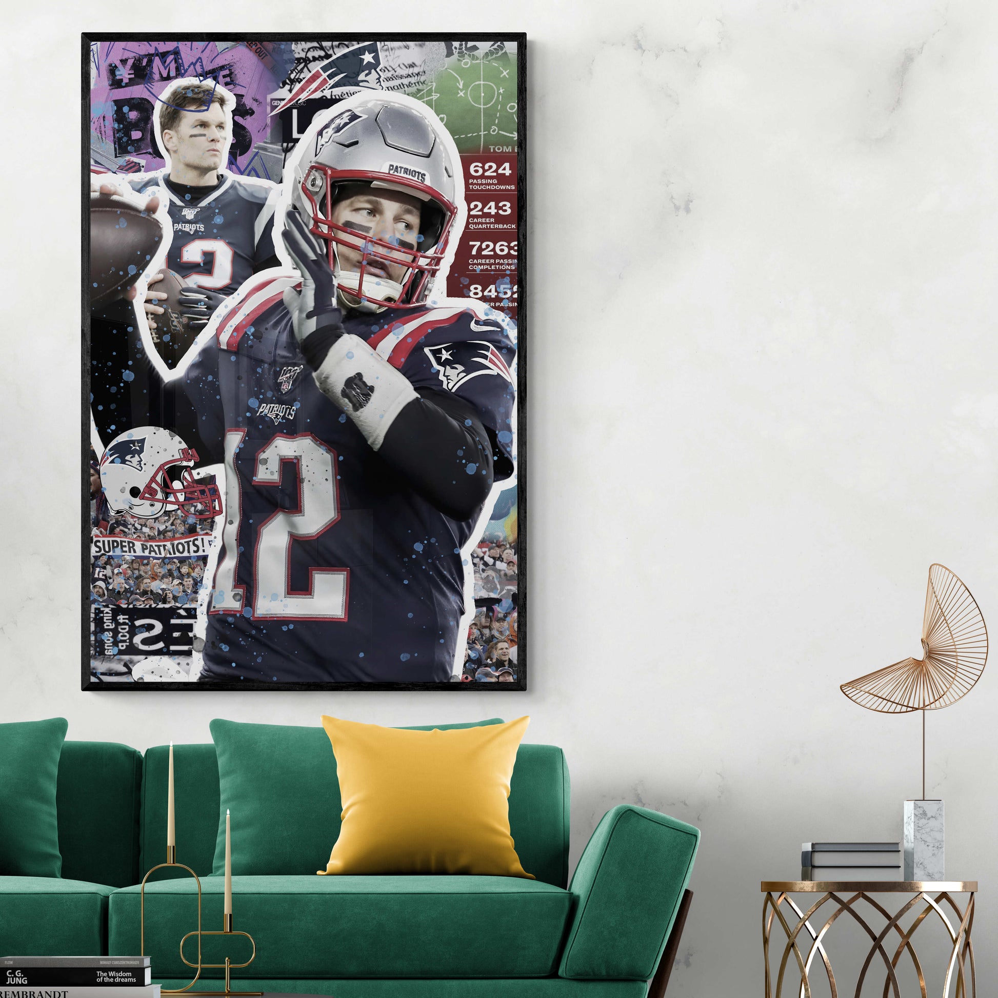 Beautify your home with this POP ART American Football Brady. This image presents an elegant touch of artistry that will add a pop of beauty to your home! Each product is made with the utmost care and attention to detail after ordering and is stretched on a canvas or framed upon request.