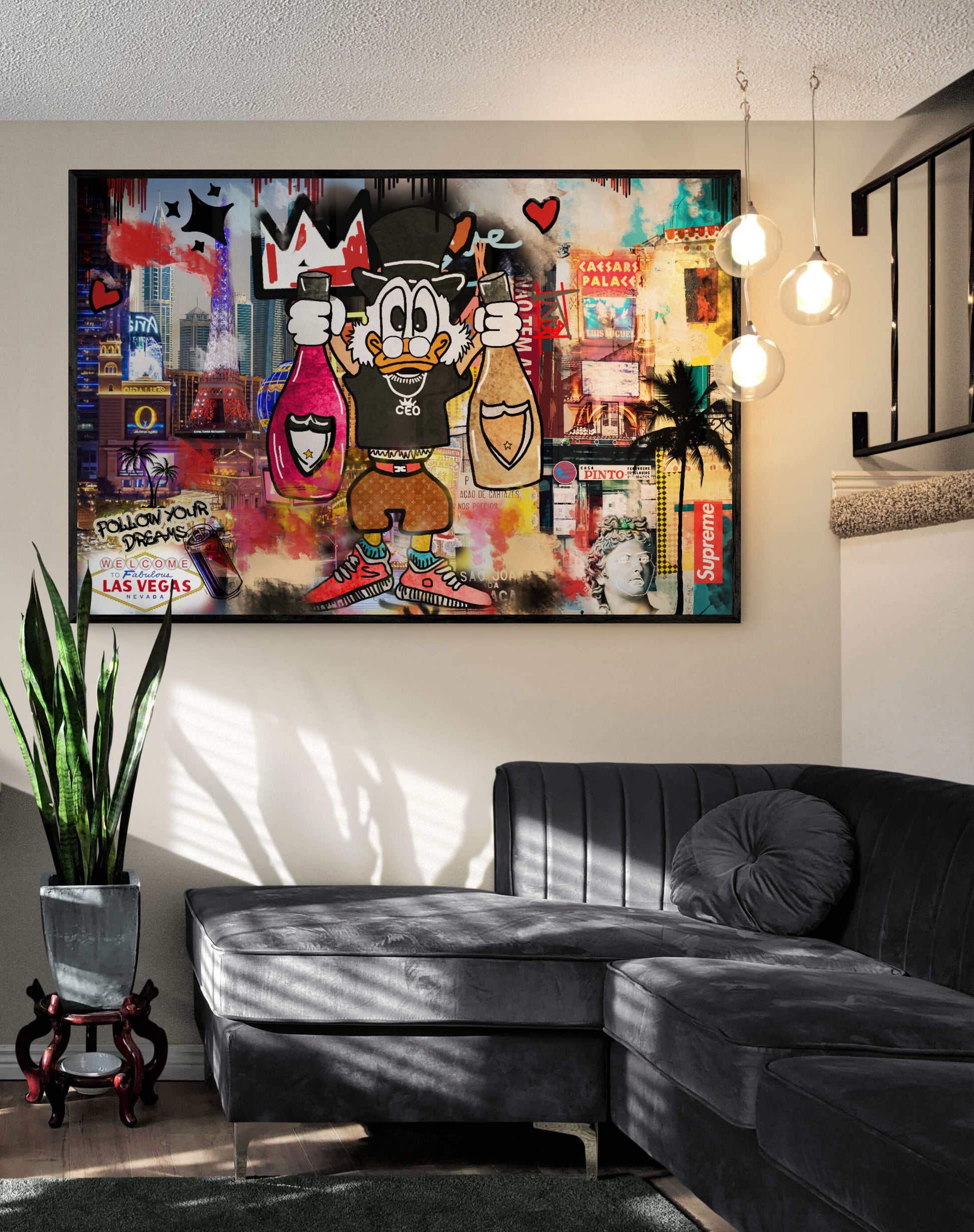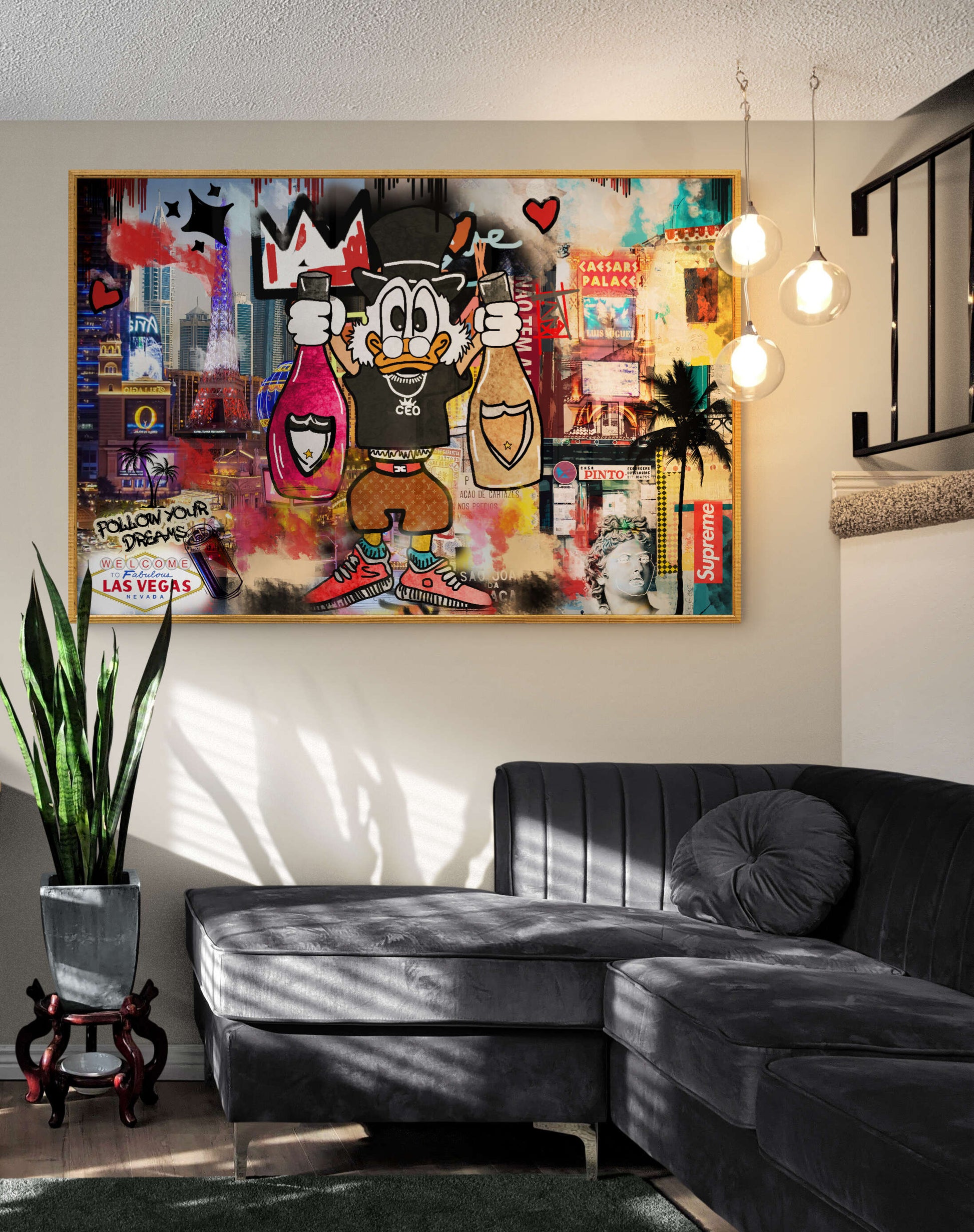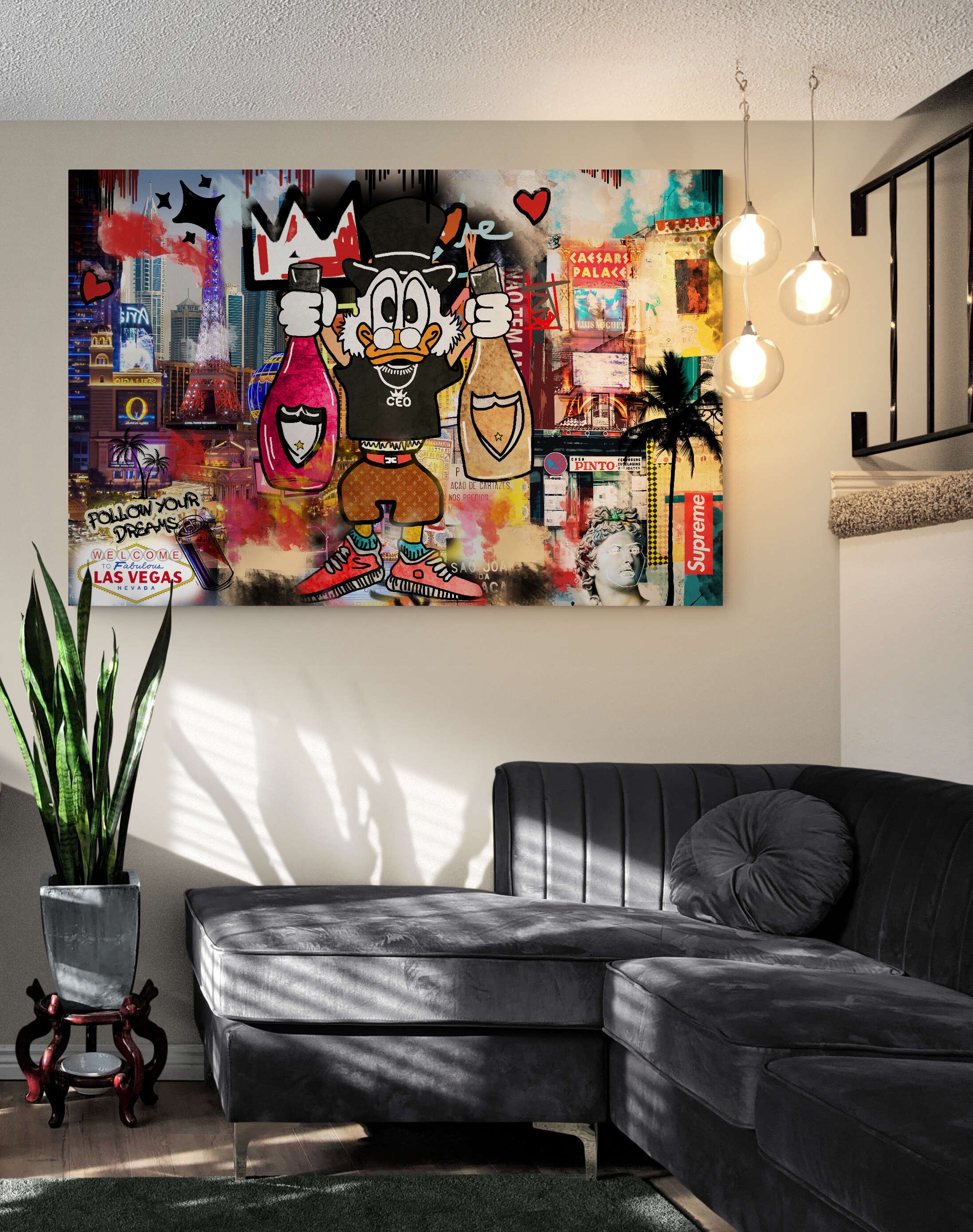 Beautify your home with this POP ART Las Vegas Hustle Party Edition picture. This image presents an elegant touch of artistry that will add a pop of beauty to your home! Each product is made with the utmost care and attention to detail after ordering and is stretched onto a canvas or framed upon request.