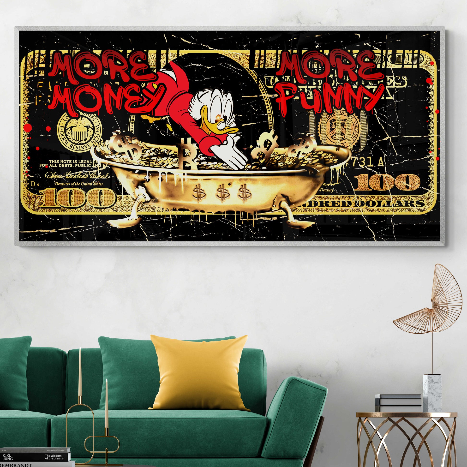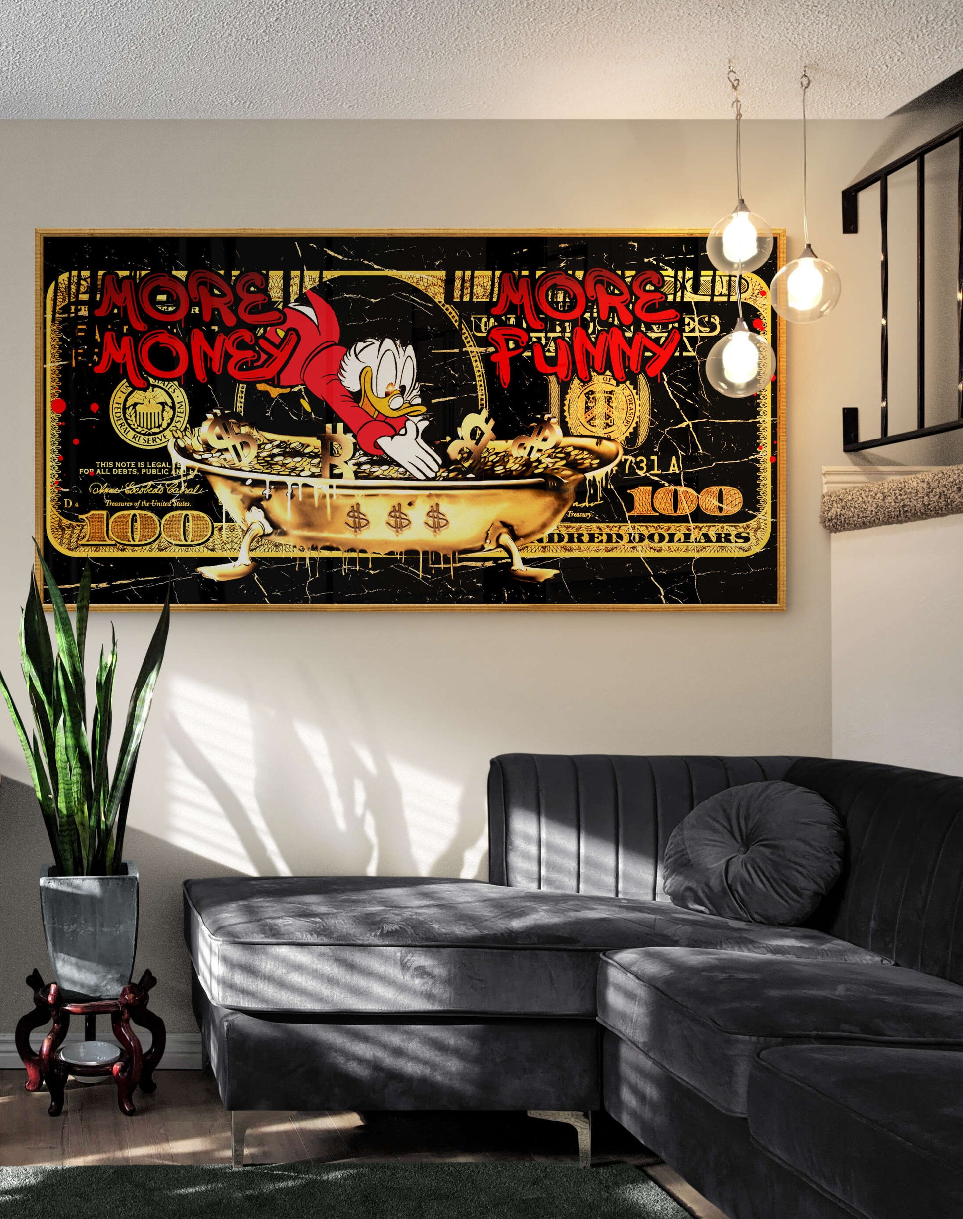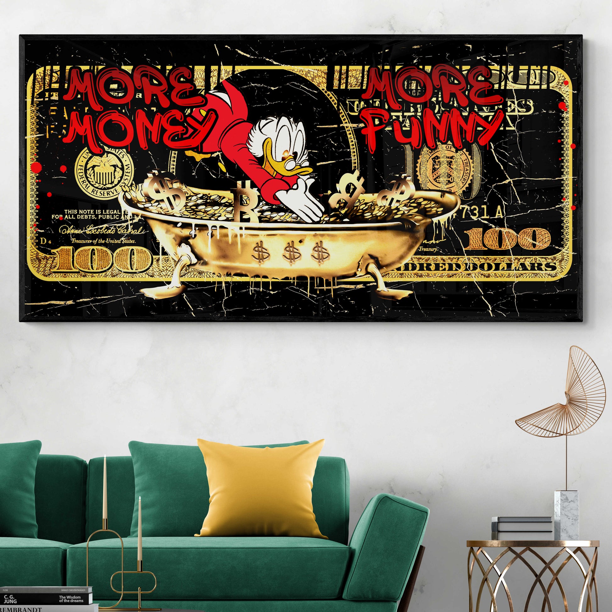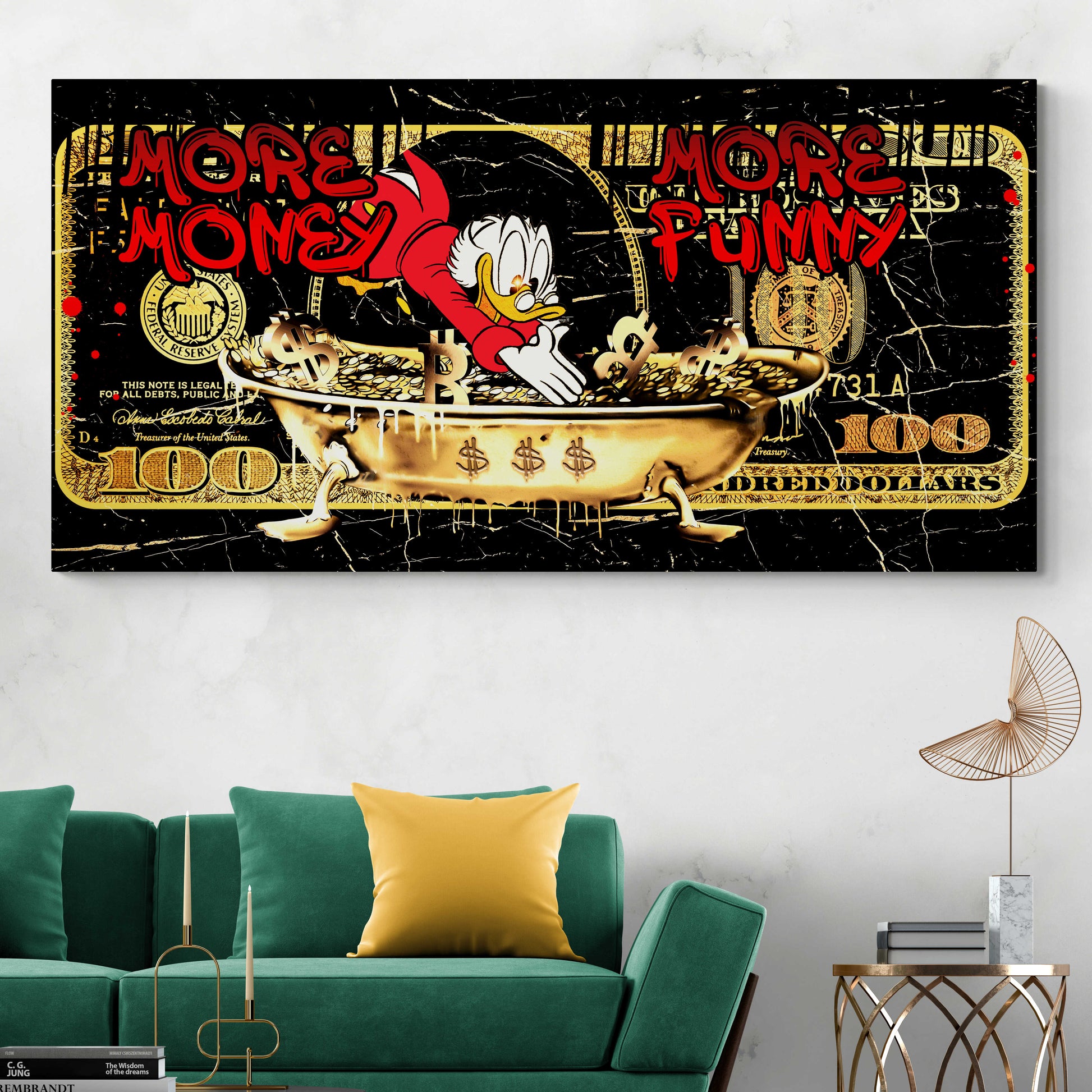 Beautify your home with this POP ART More Money More Funny picture. This image presents an elegant touch of artistry that will add a pop of beauty to your home! Each product is made with the utmost care and attention to detail after ordering and is stretched on a canvas or framed upon request.