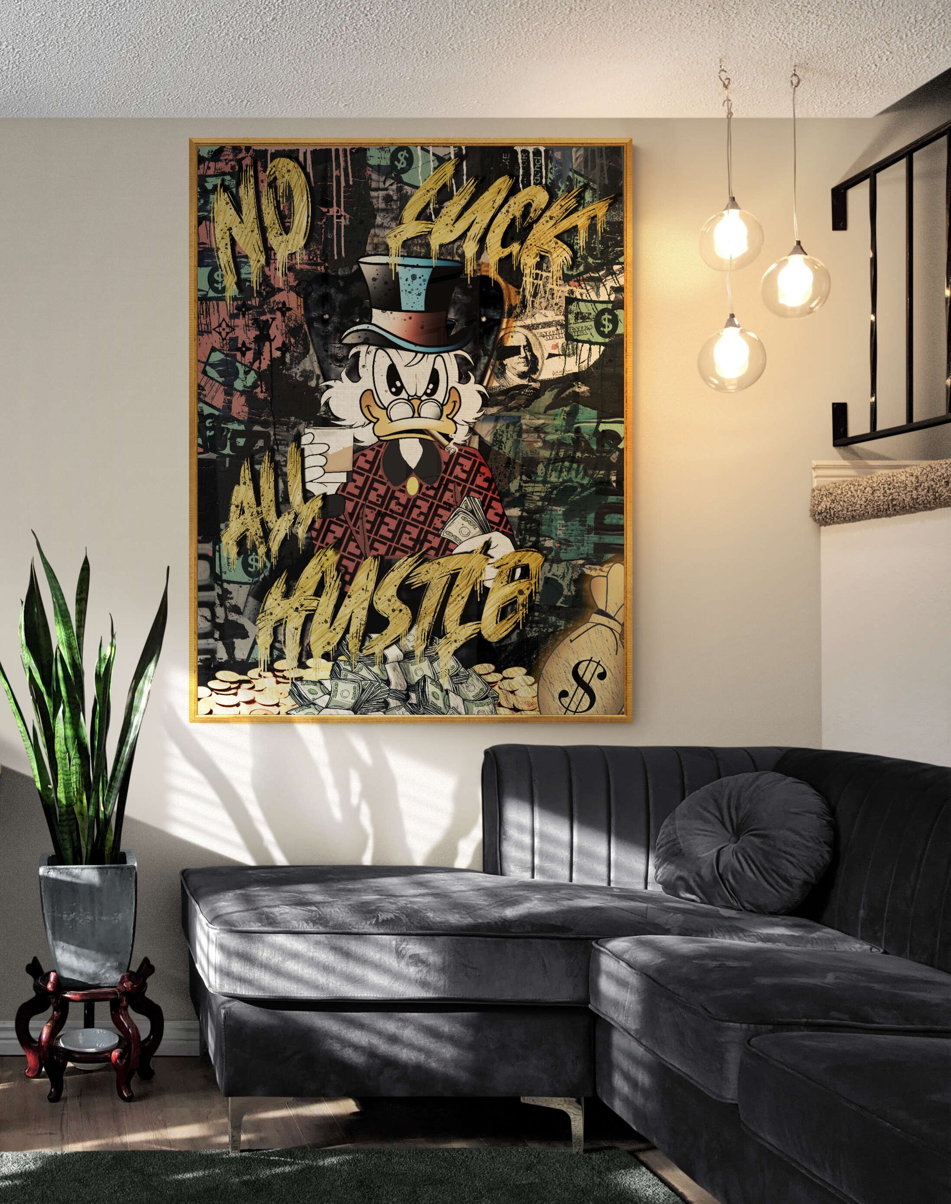 Beautify your home with this POP ART No Luck All Hustle picture. This image presents an elegant touch of artistry that will add a pop of beauty to your home! Each product is made with the utmost care and attention to detail after ordering and is stretched on a canvas or framed upon request.
