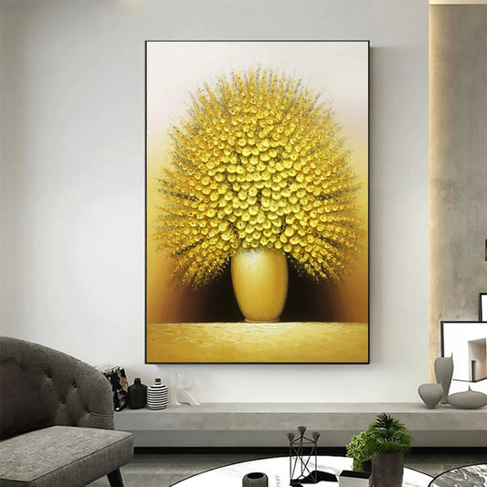 HANDGEZEICHNET Gelbe Blumen in Vase Ölgemälde