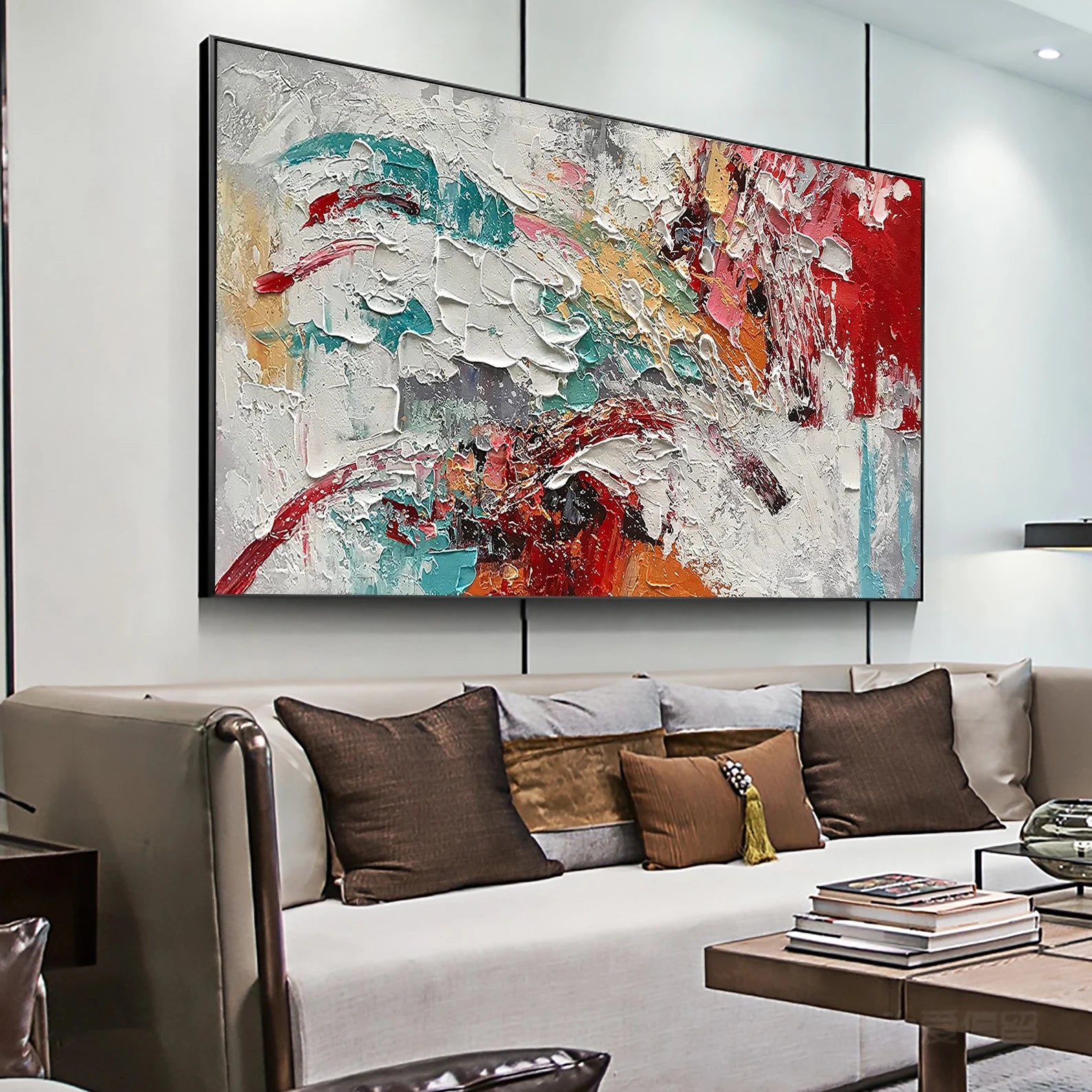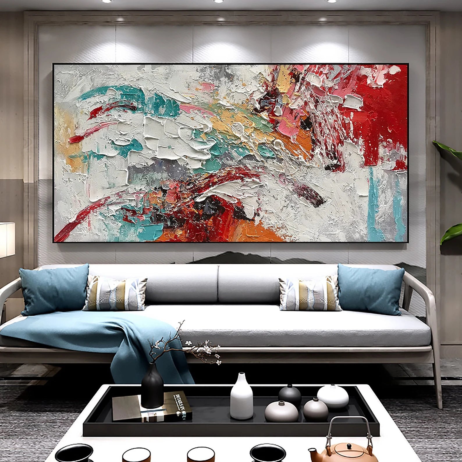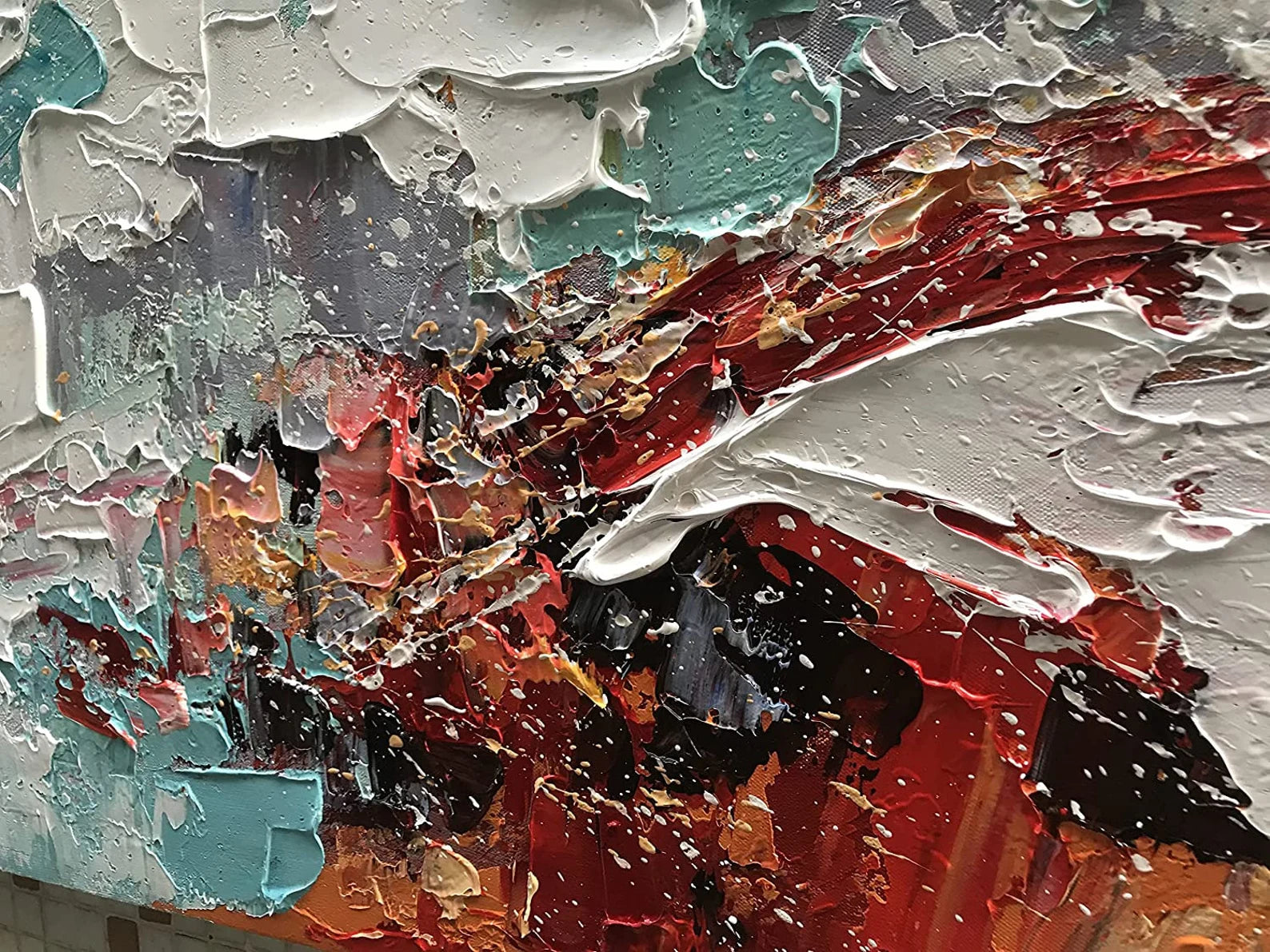 Abstraktes Weiss Rot Blau Ölgemälde Handmade
