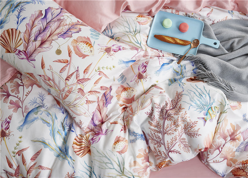 Blumen und Fische Rosa Bettbezug Set (100% Ägyptische Baumwolle)