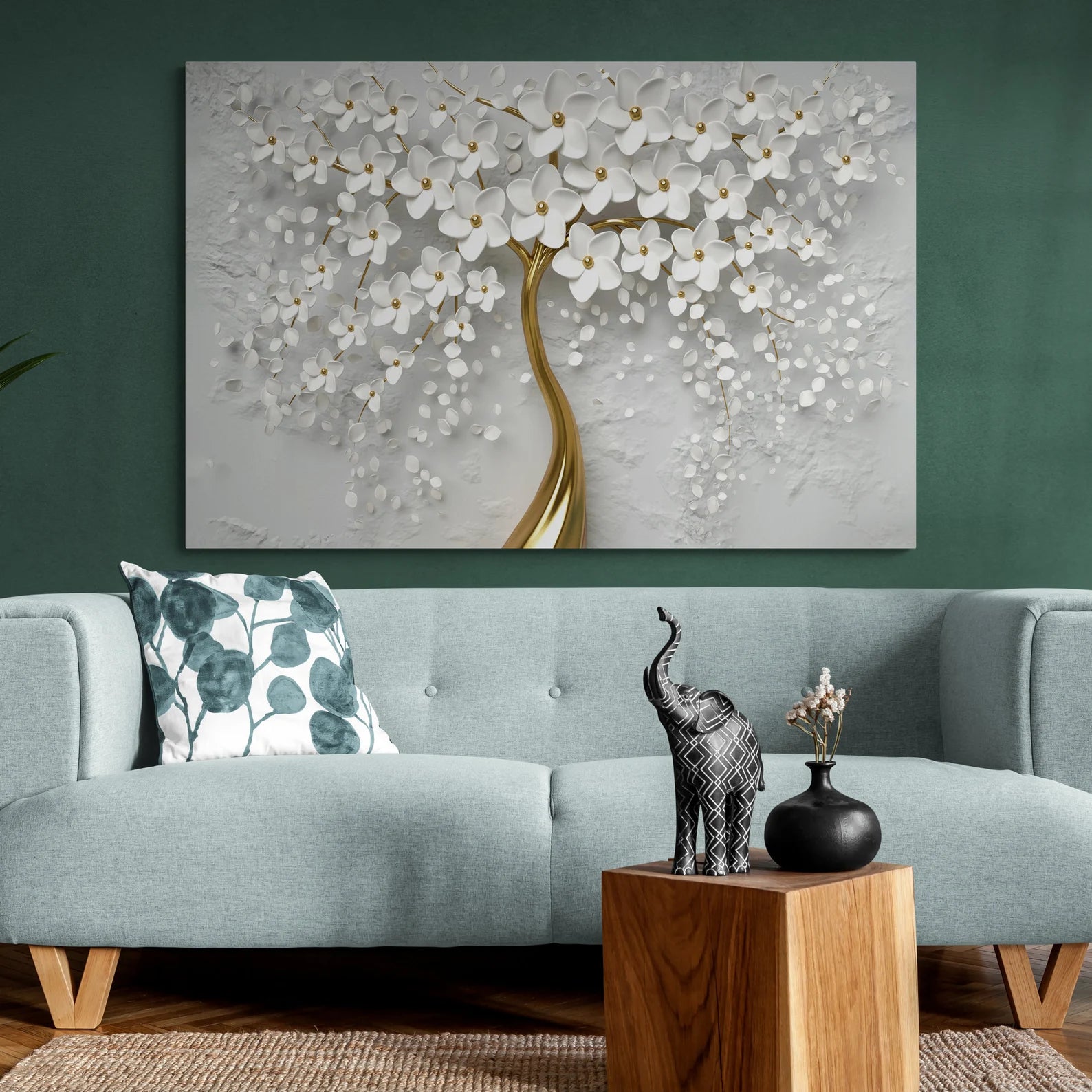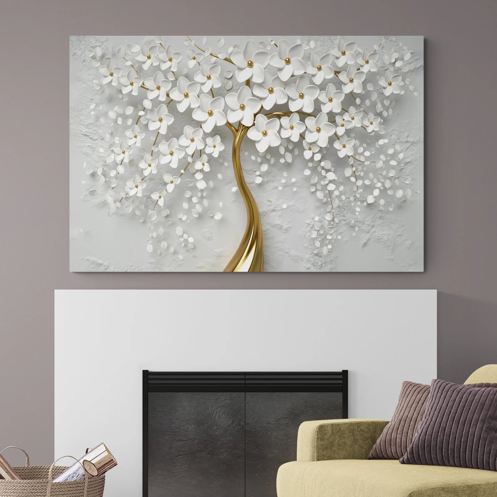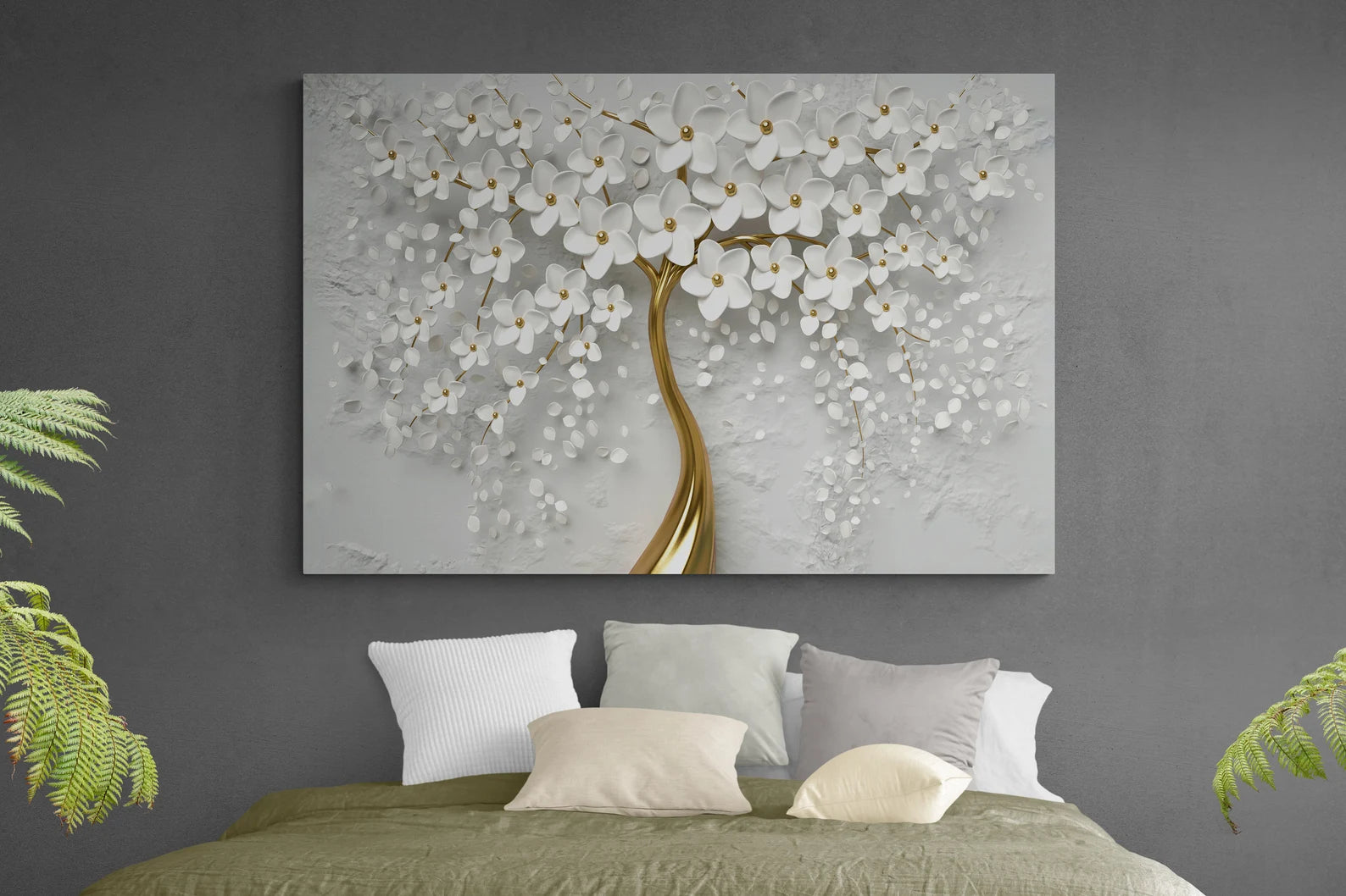 Verschönern Sie Ihr Zuhause mit diesem Goldener Baum, Weisse Blüten Canvakunst Bild. Dieses Bild präsentiert einen eleganten Hauch von Kunstfertigkeit, die einen Pop der Schönheit in Ihr Zuhause hinzufügen wird! Jedes Produkt wird nach der Bestellung mit äußerster Sorgfalt und Detailgenauigkeit hergestellt.