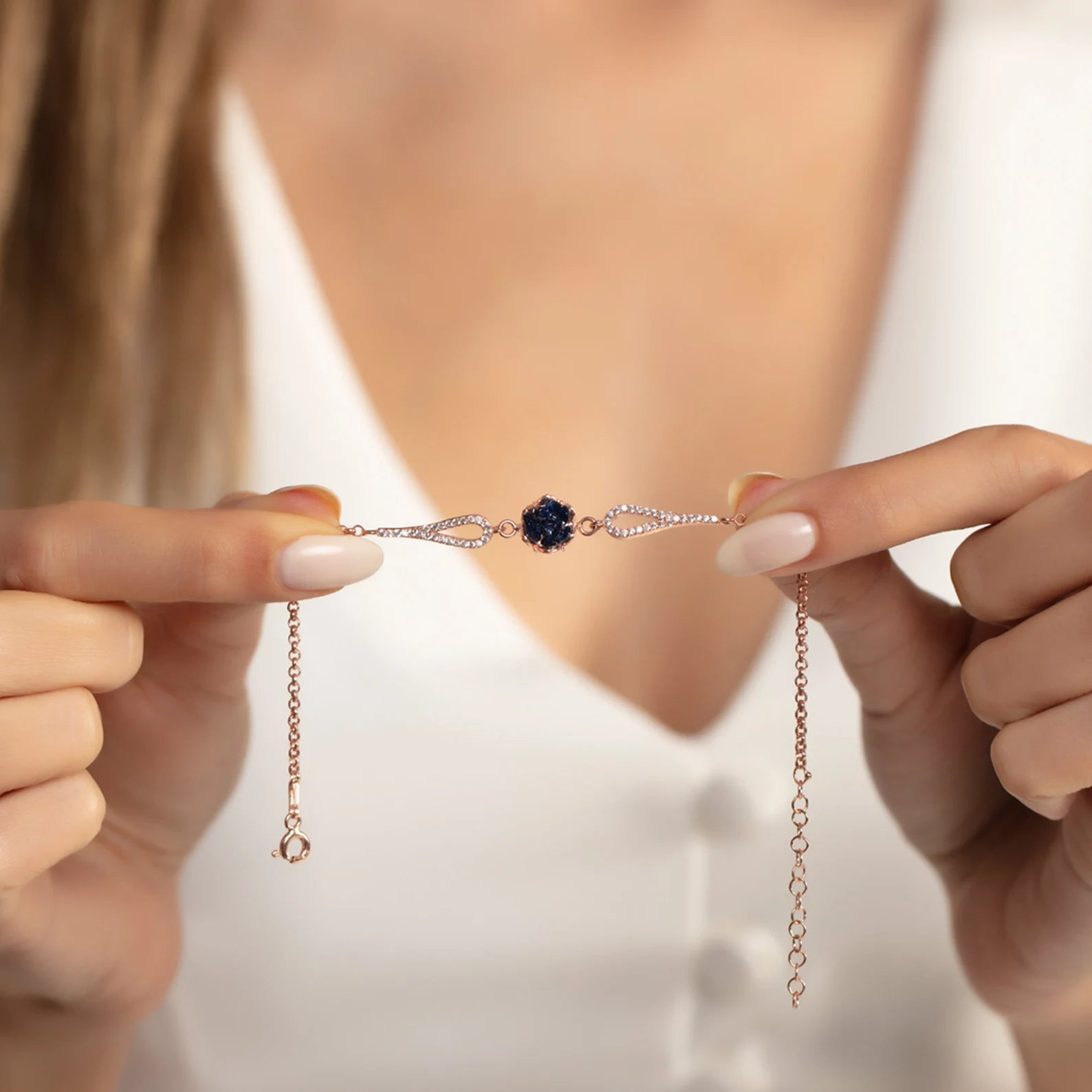 Schwarz/Blaue Lotus Zirkonia Armband