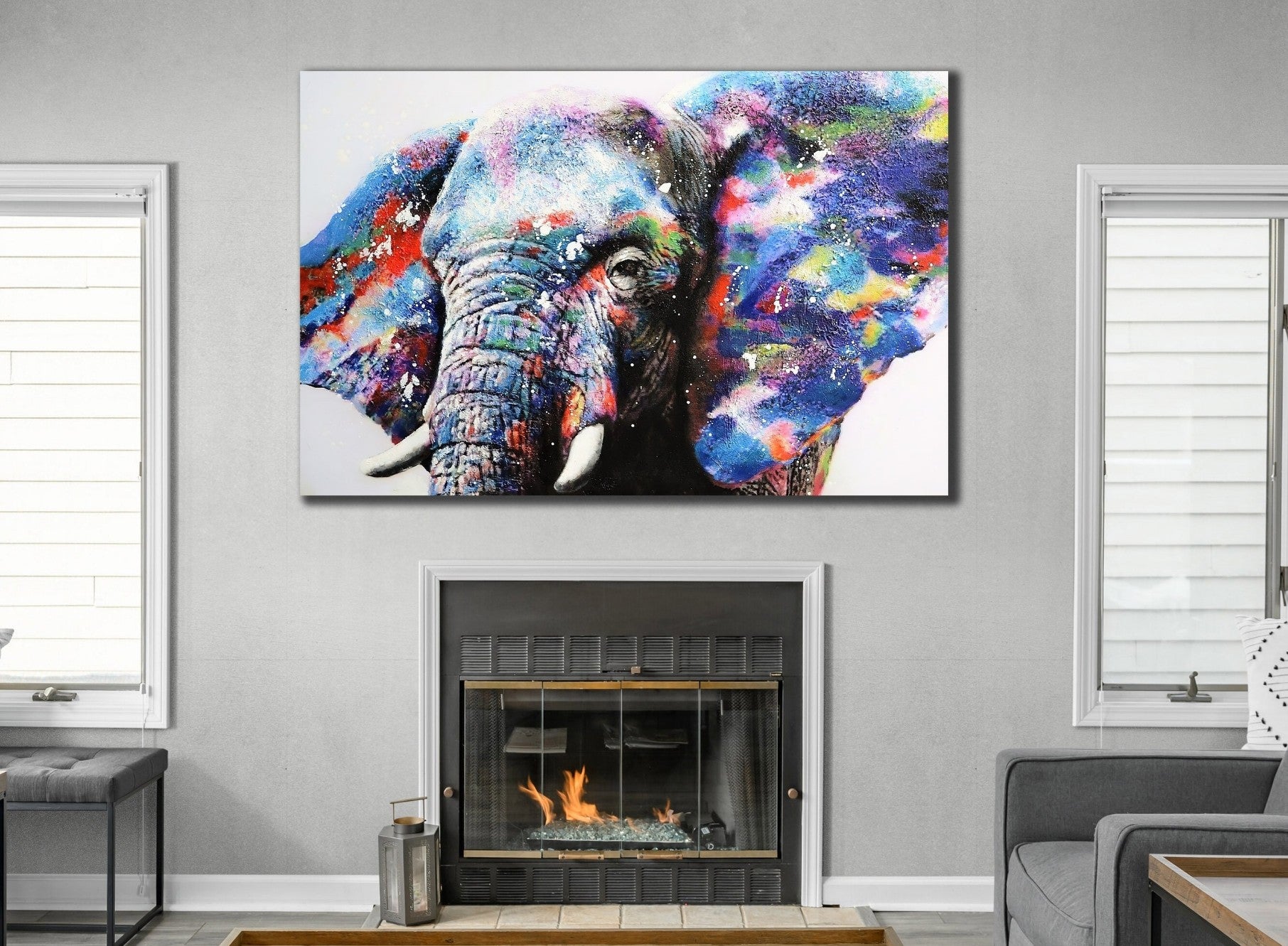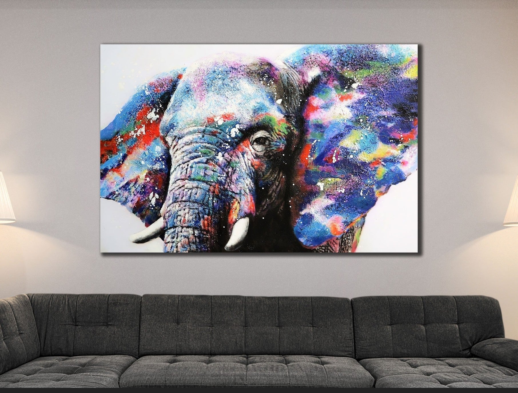 Abbellisci la tua casa con questa immagine di elefante con grandi orecchie colorate. Questa immagine presenta un elegante tocco di artigianalità che aggiungerà un tocco di bellezza alla tua casa! Ogni prodotto è realizzato con la massima cura e attenzione ai dettagli dopo l'ordine e viene teso su tela o in un quadro.