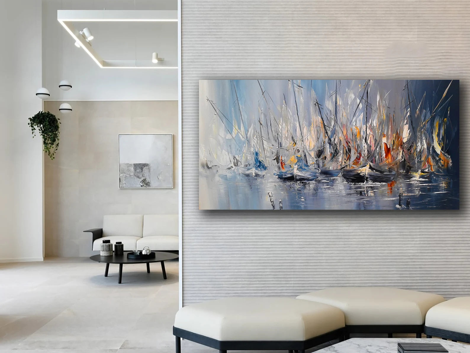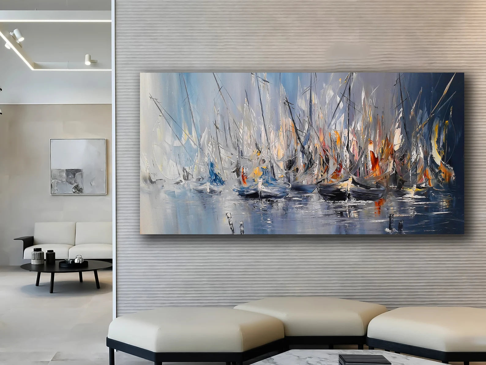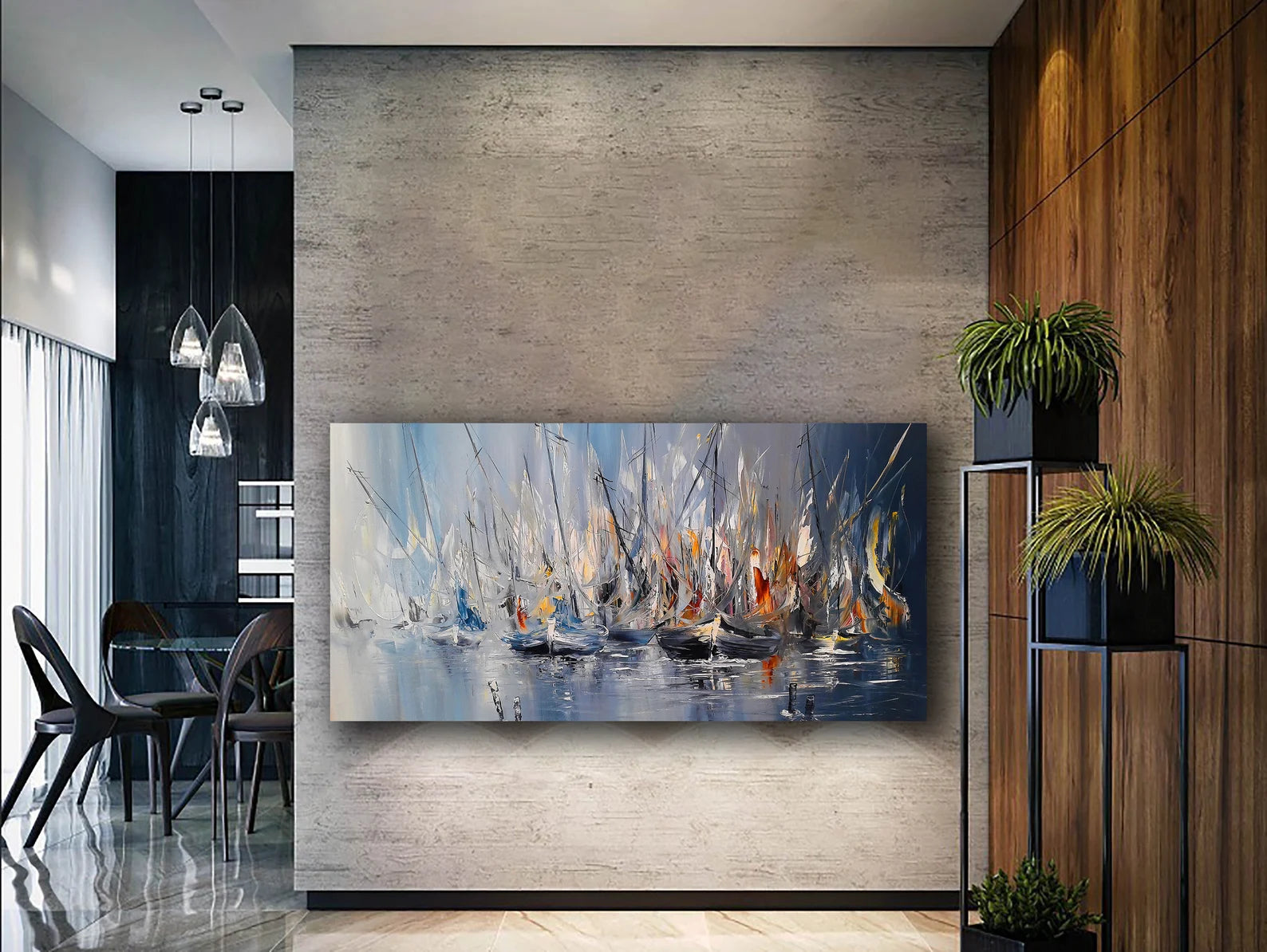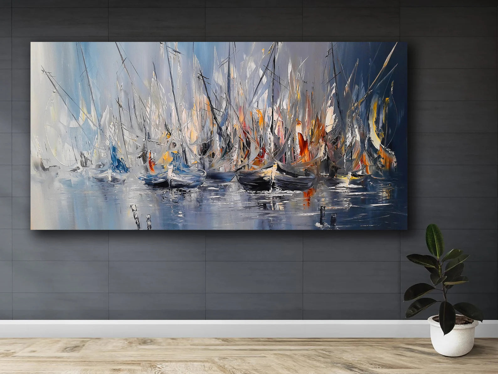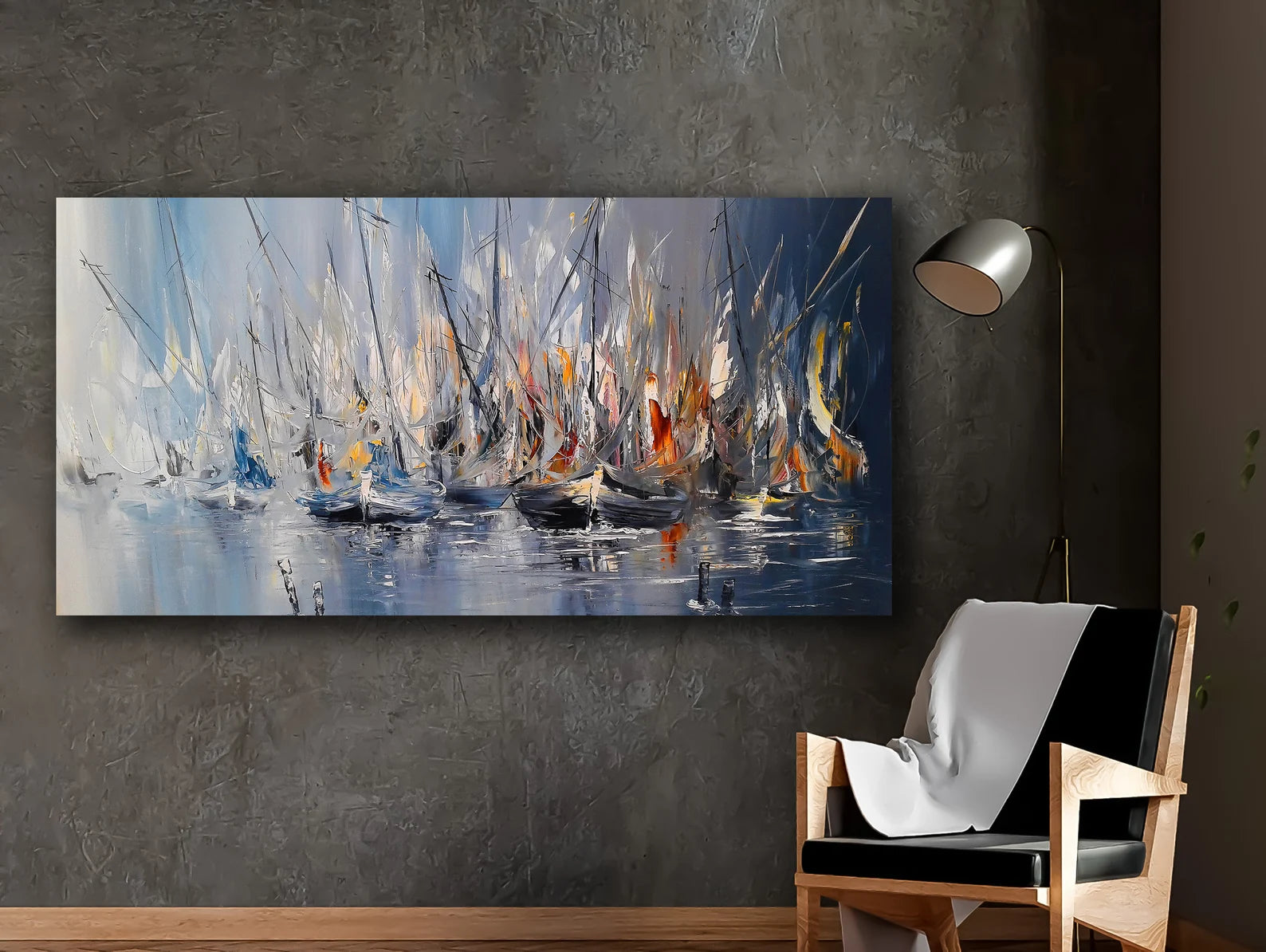 Arricchisci la tua casa con questo quadro su tela con navi in mare. Questa immagine presenta un elegante tocco di artigianalità che aggiungerà un tocco di bellezza alla tua casa! Ogni prodotto è realizzato con la massima cura e attenzione ai dettagli dopo l'ordine e viene teso su tela o in un quadro.
