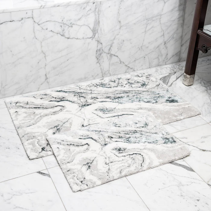 Progettato esclusivamente per il bagno, il tappetino da bagno Splash Mountain vanta un design lussuoso dal fascino ultra moderno. Il bellissimo motivo di una cima di montagna marmorizzata lo rende un colpo d'occhio immediato. Questo tappeto ha dettagli intricati con una trama di qualità che gli conferisce fascino e comfort. Ha una consistenza morbida e liscia che offre un maggiore comfort calmando i piedi.