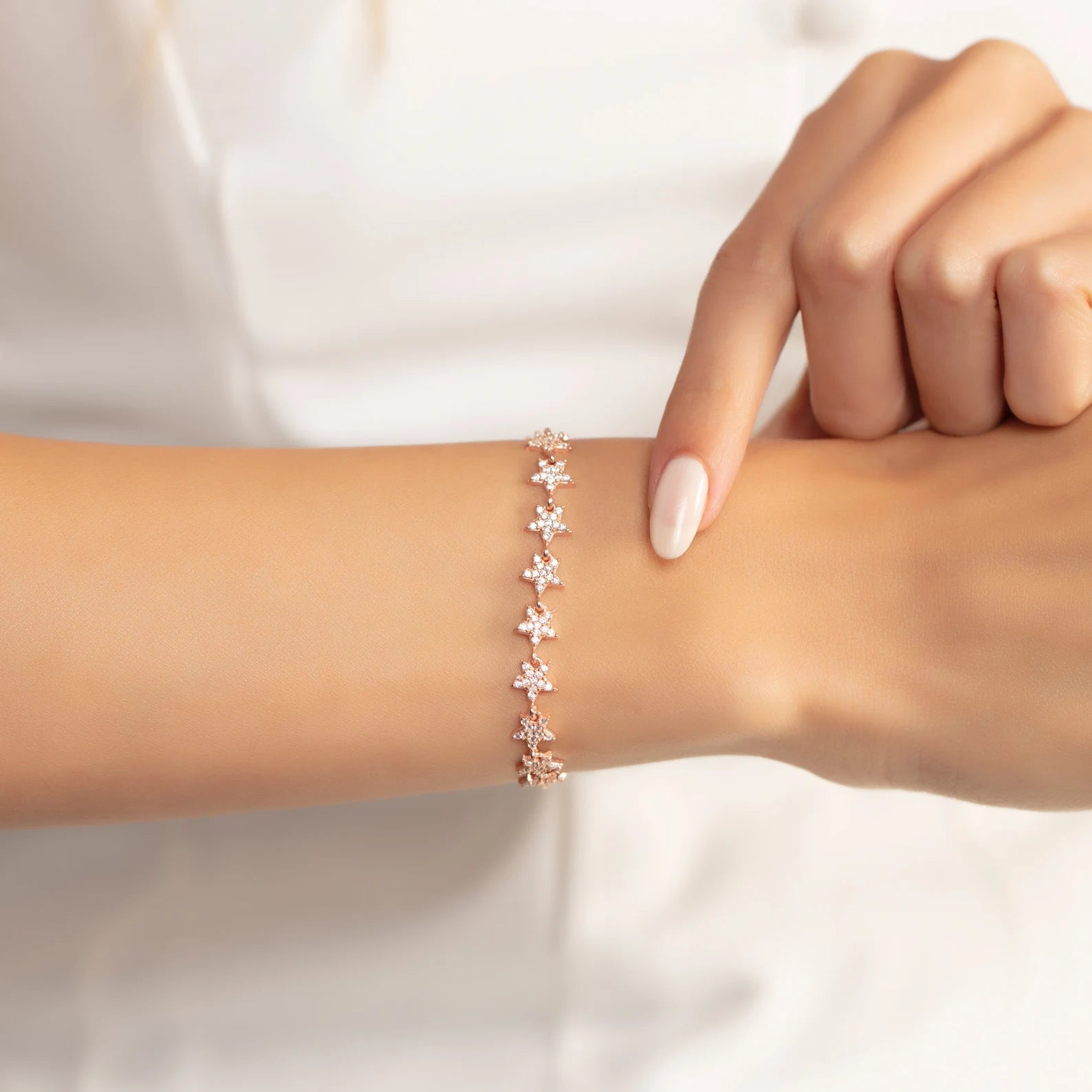 Dieses Sternen Zirkonia Armband wird alle Blicke auf sich ziehen. Wenn Sie diese Halskette bestellen, wird es direkt nach Bestelleingang von Hand für Sie produziert.