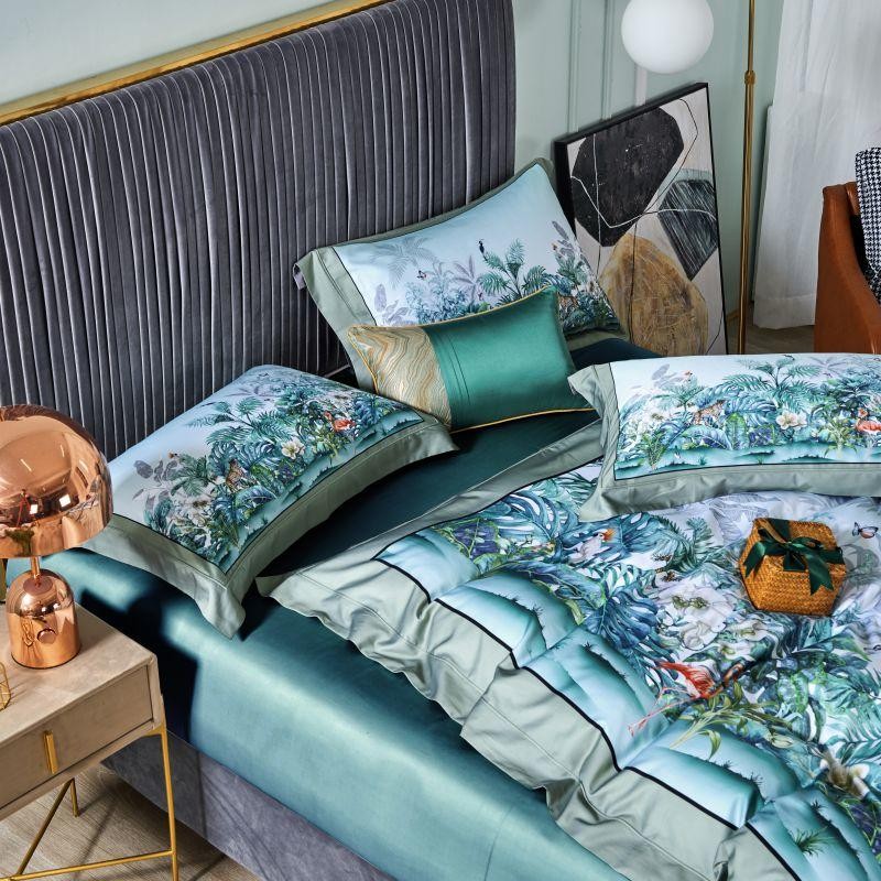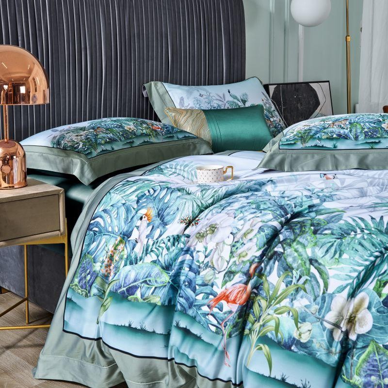 Aggiungi un tocco glamour all'arredamento della tua camera da letto attuale con il set copripiumino verde Flowers & Birds. Realizzato in morbido cotone egiziano, è impreziosito da cuciture eleganti e motivi classici. In questa collezione si possono trovare anche accenti dorati, che aggiungono un tocco di lusso ai tuoi interni.