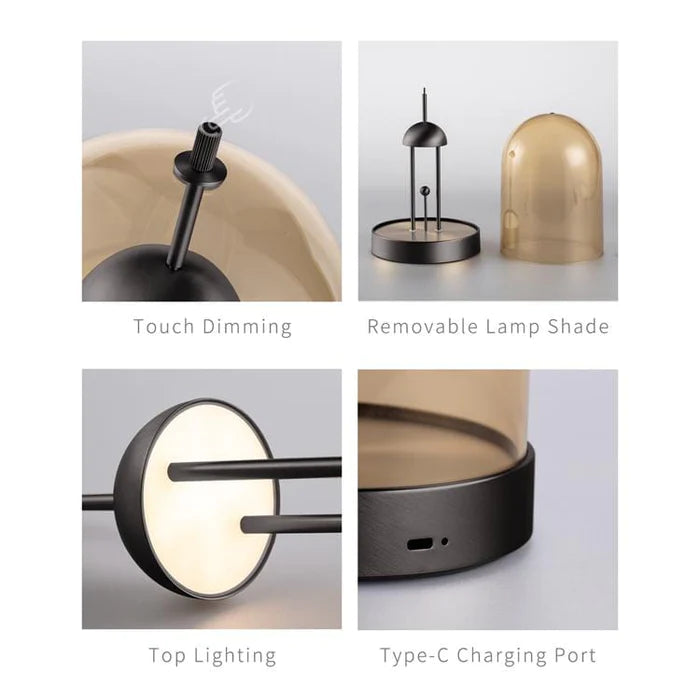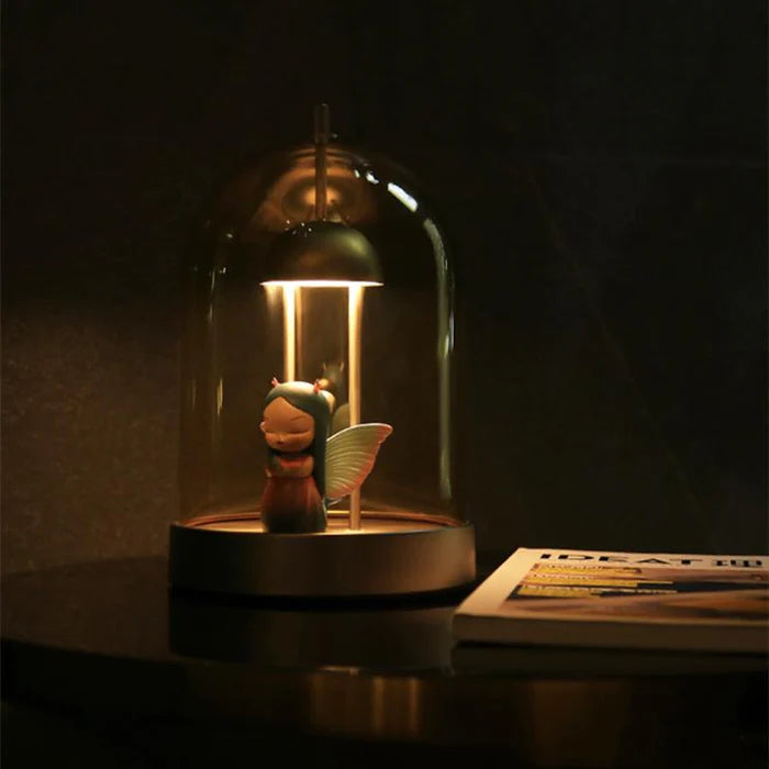 Questa lampada da vetrina decorativa a batteria con luce calda e dimmerabile e cupola in vetro crea un'aura di fascino familiare.