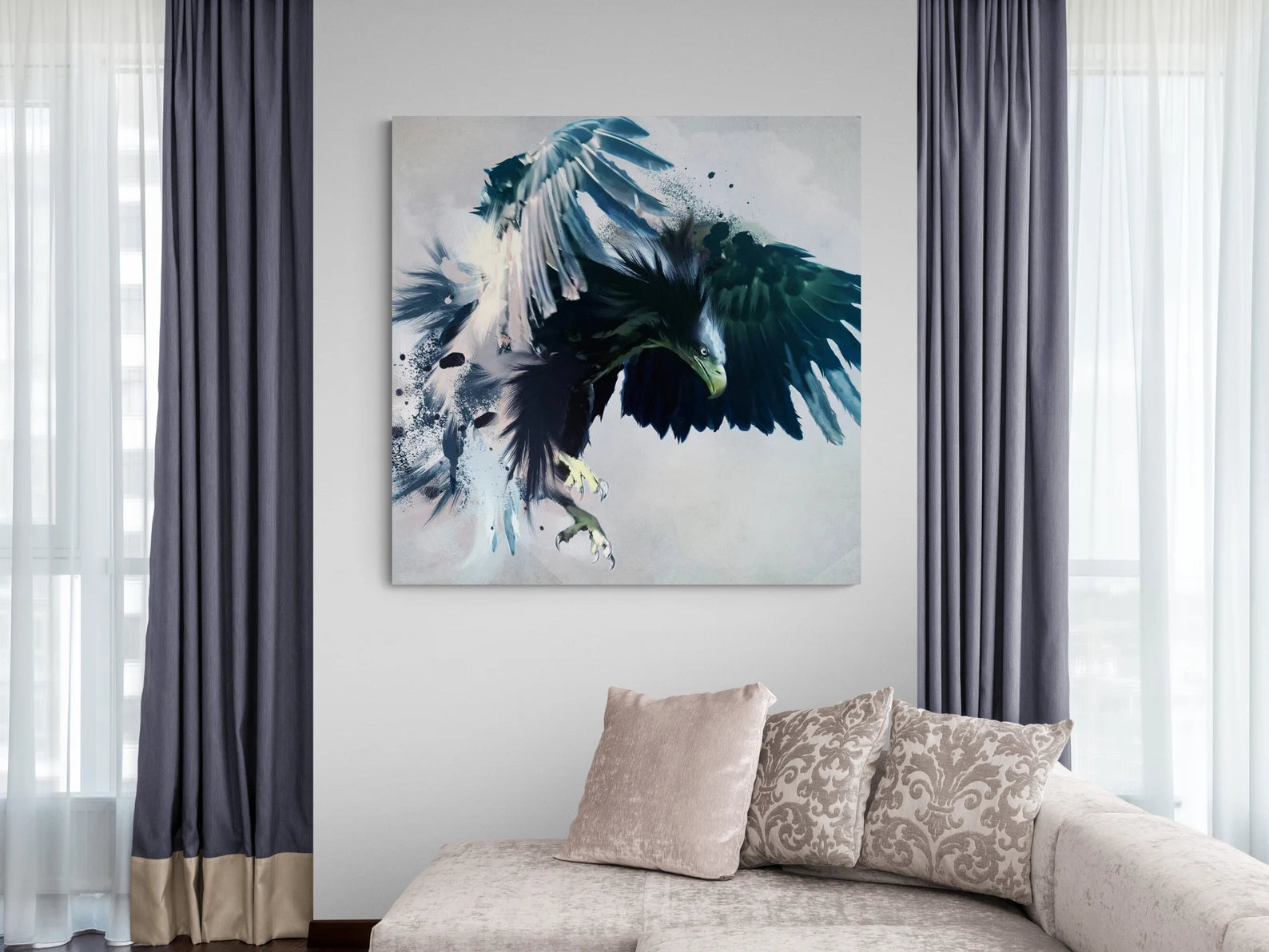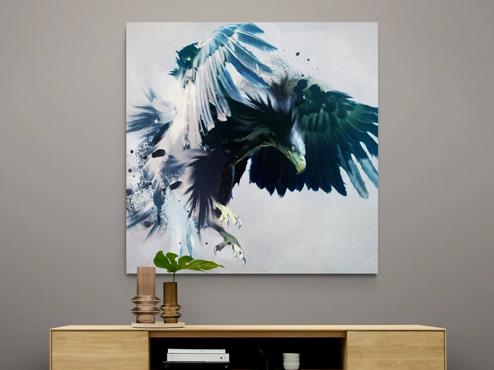 Arricchisci la tua casa con questo quadro su tela Wild Blue Eagle. Questa immagine presenta un elegante tocco di artigianalità che aggiungerà un tocco di bellezza alla tua casa! Ogni prodotto è realizzato con la massima cura e attenzione ai dettagli dopo l'ordine e viene teso su tela o in un quadro.