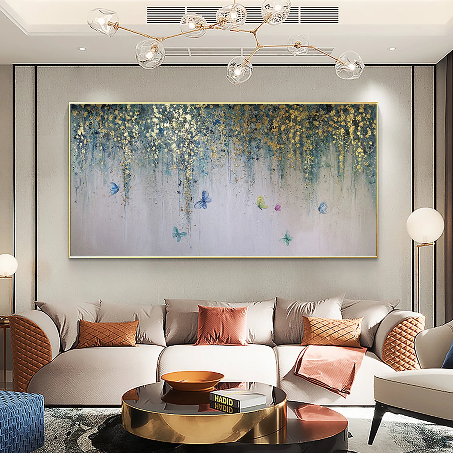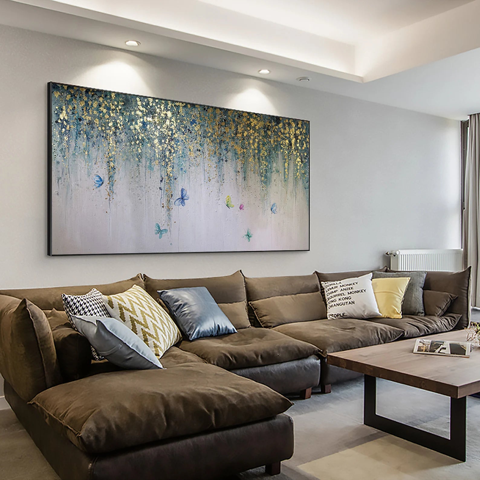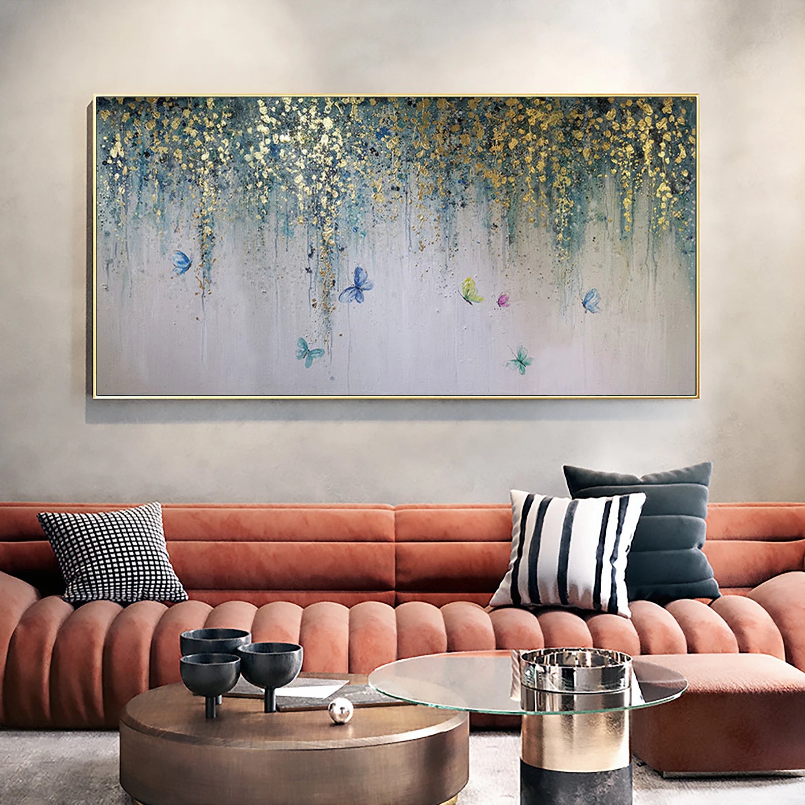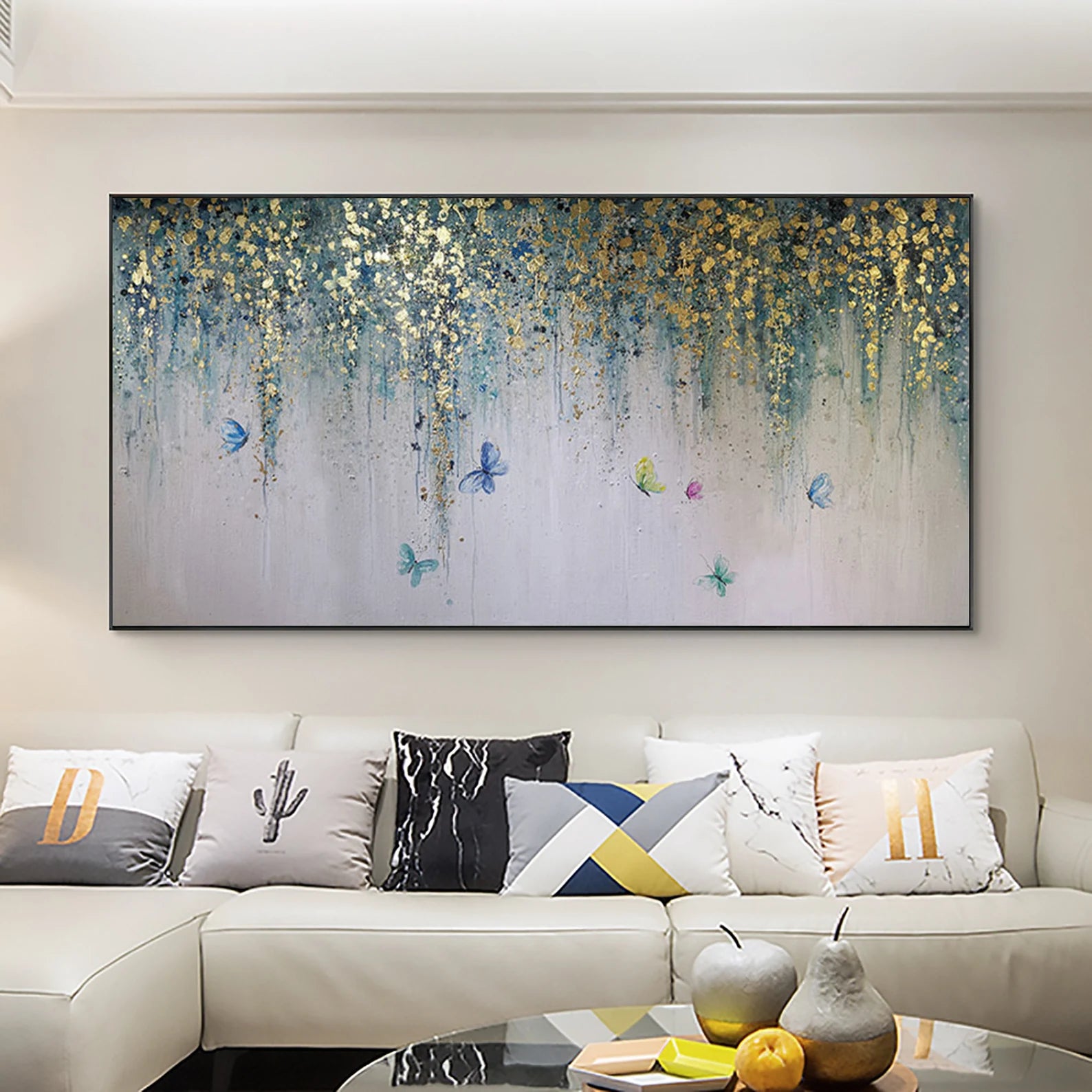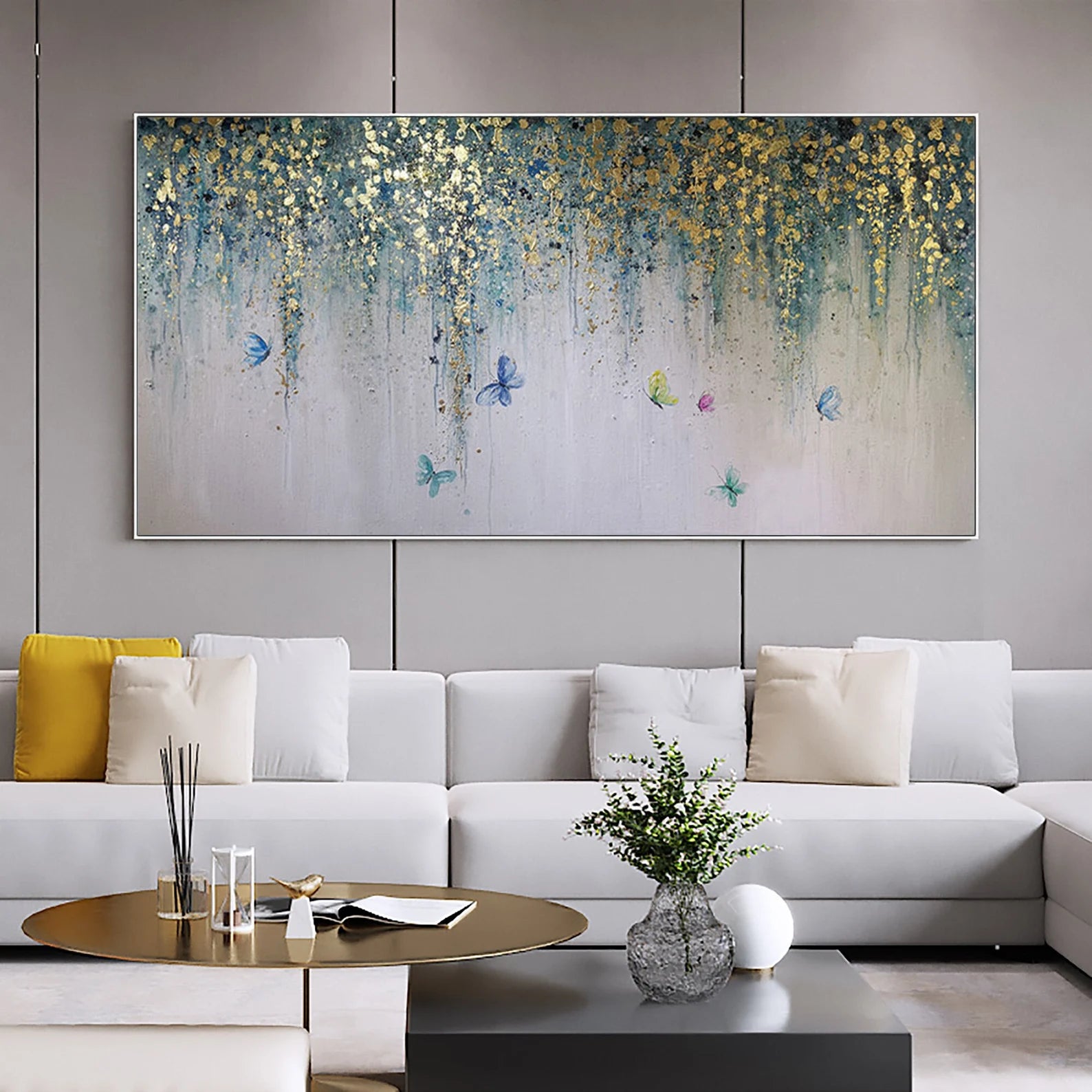 Abstrakte Blattgold Schmetterling Ölgemälde Handmade