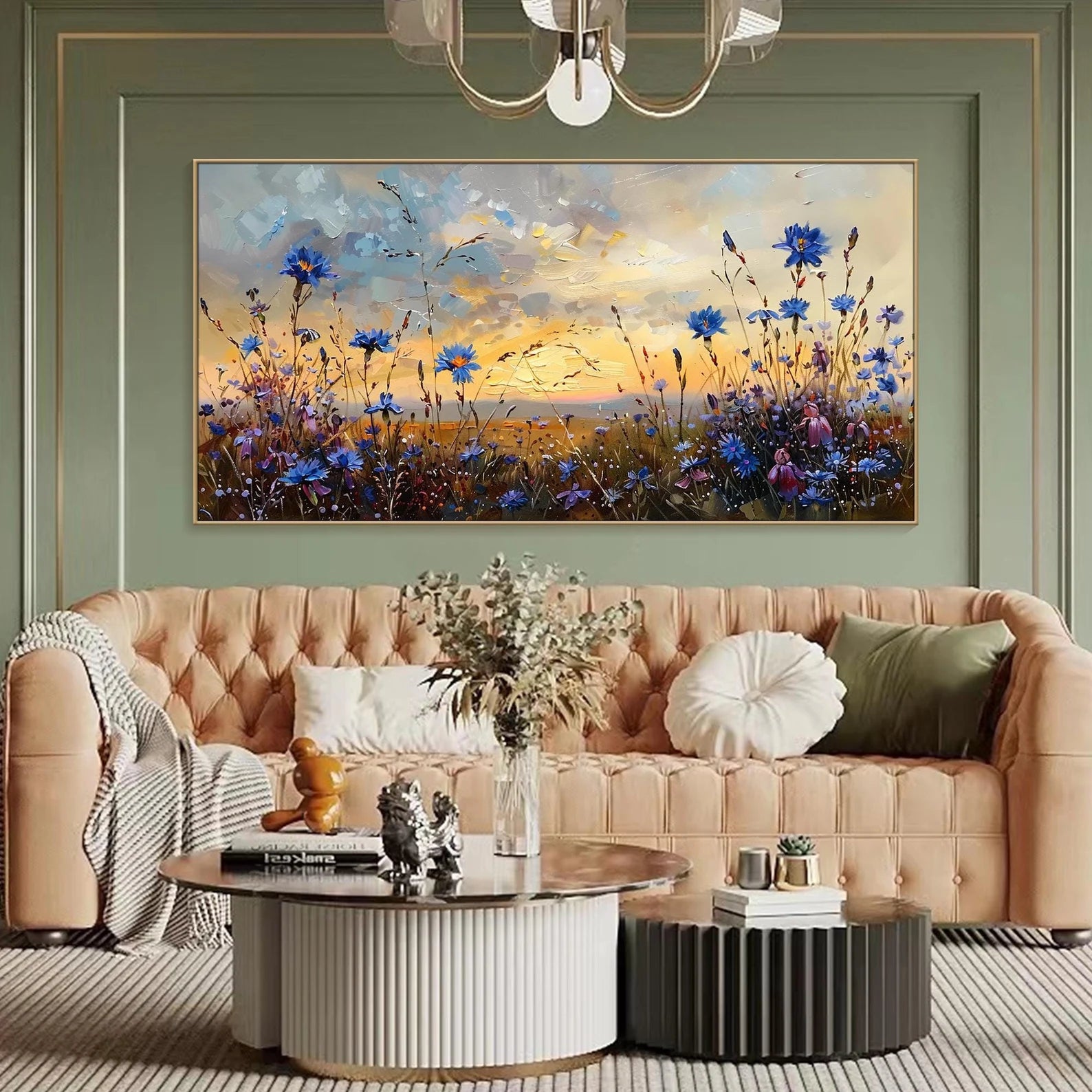 Bezaubernde Blumenlandschaft Ölgemälde Handmade