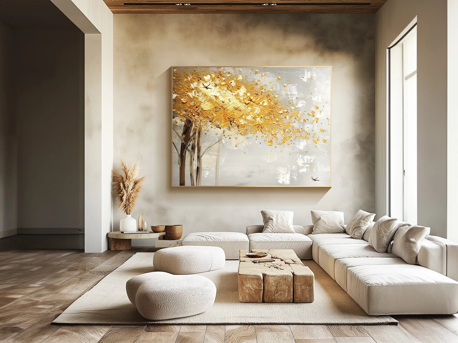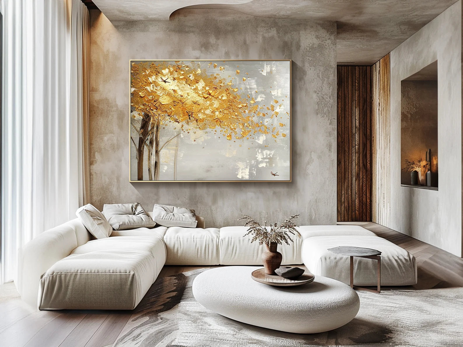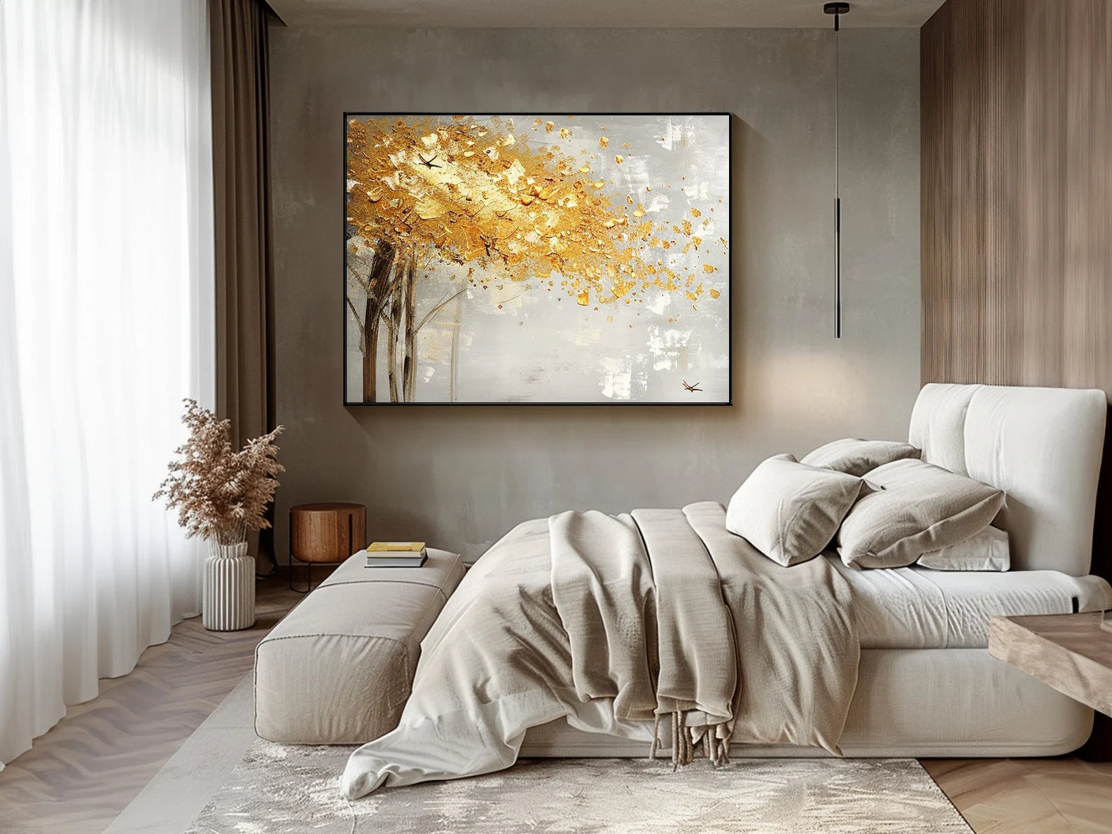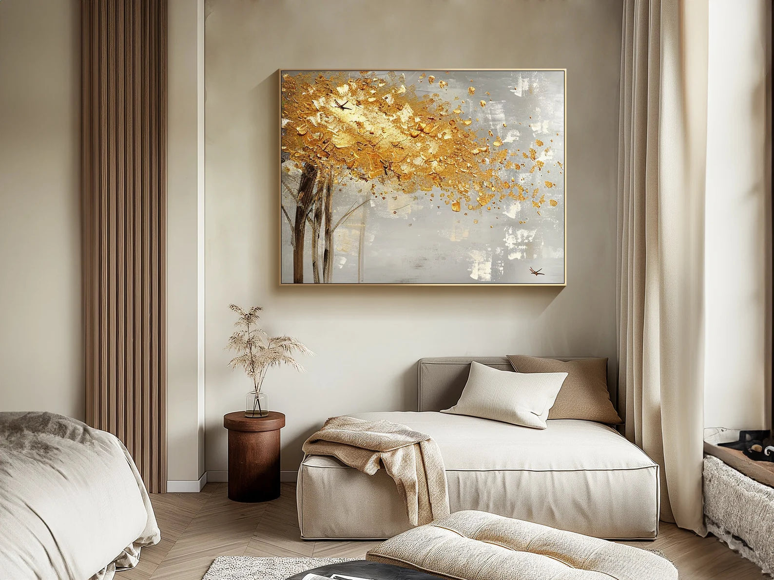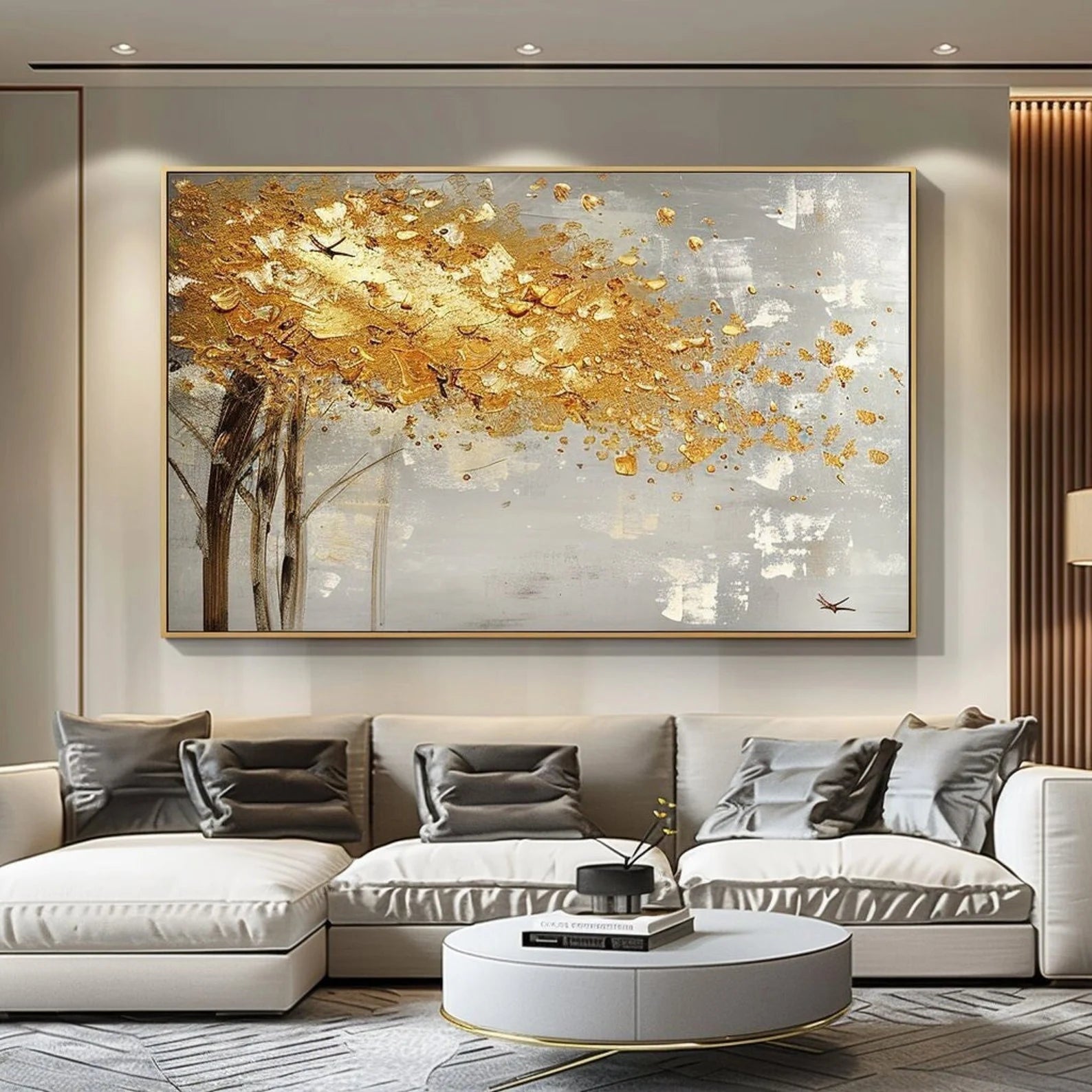 Der Goldene strahlende Baum Ölgemälde Handmade