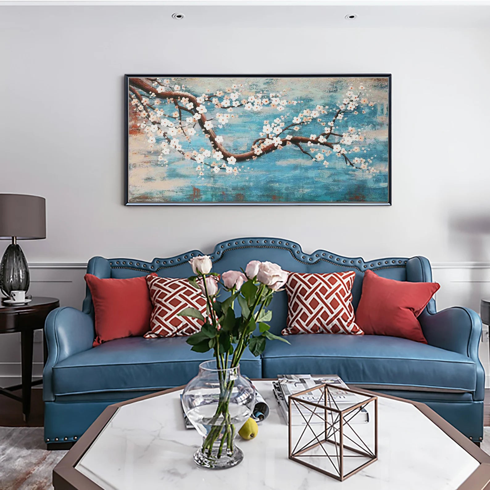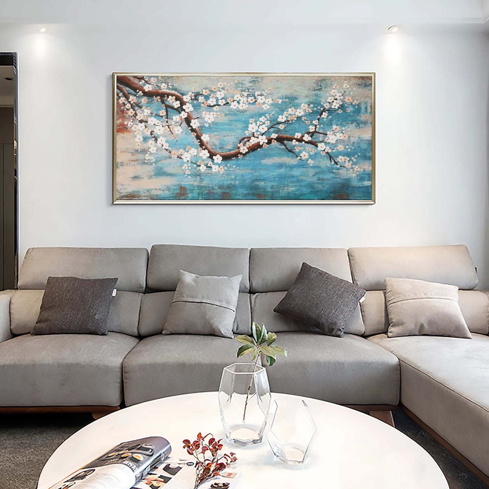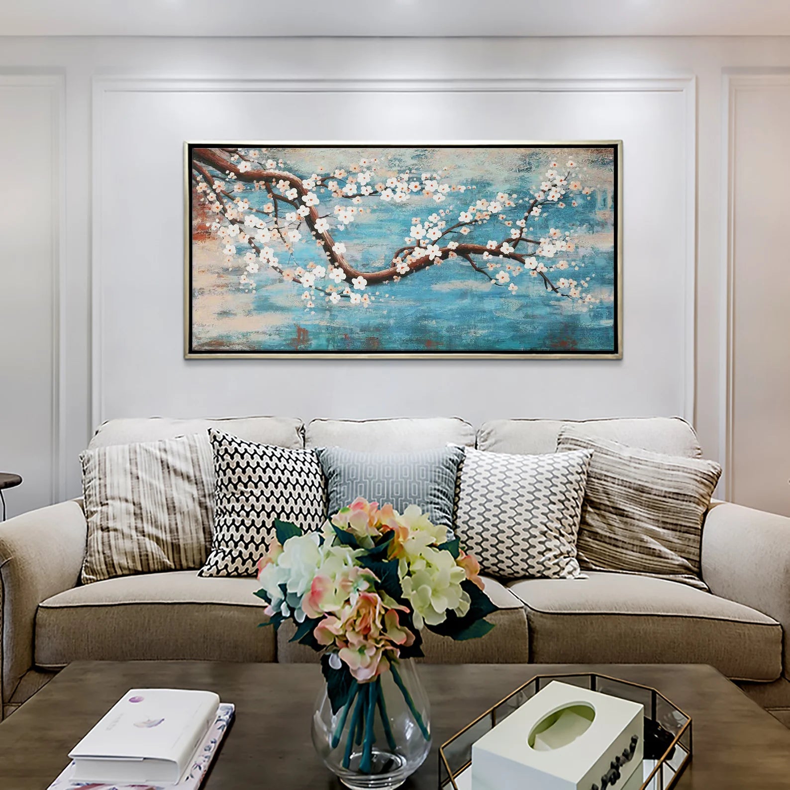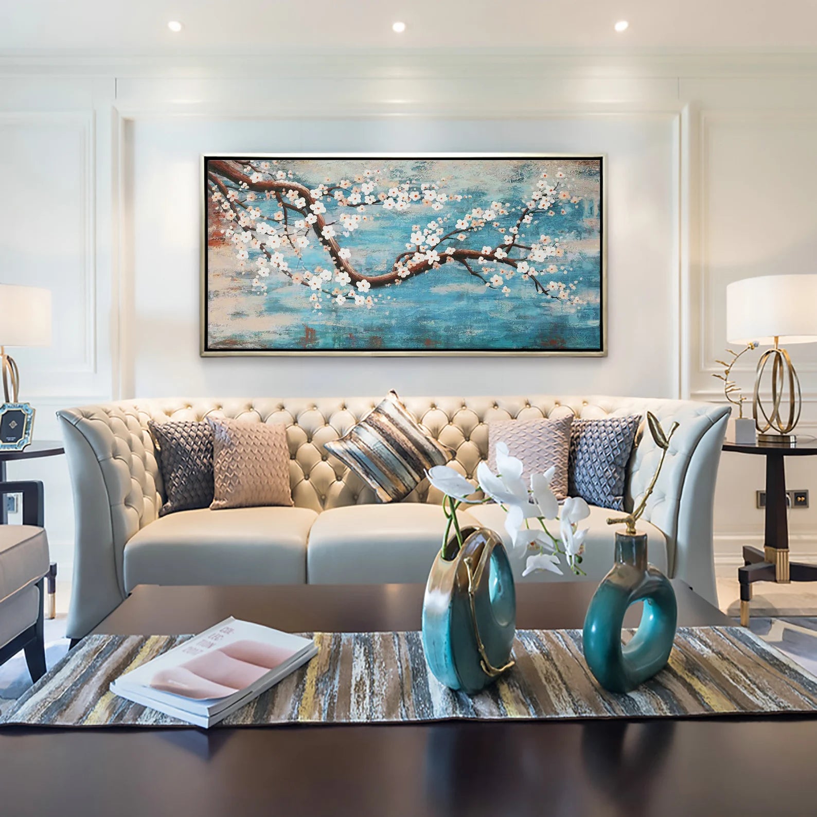 Dieses wunderschöne Ölgemälde wird Ihr Zuhause in einem neuen Gewand erscheinen lassen. Durch den 3D Effekt, wird sich das Bild ideal in Ihren Raum integrieren. Die weissen Blüten heben sich etwas von dem Bild ab, was zu dem genannten Effekt führt.