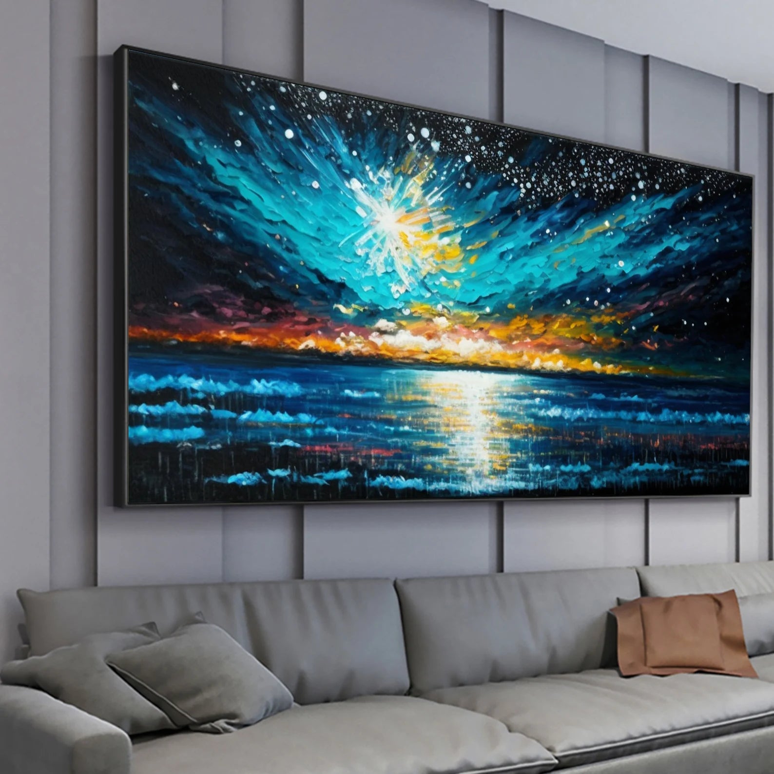 Dieses wunderschöne Ölgemälde wird Ihr Zuhause in einem neuen Gewand erscheinen lassen. Durch den 3D Effekt, wird sich das Bild ideal in Ihren Raum integrieren. Die Farben am Himmel heben sich etwas von dem Bild ab, was zu dem genannten Effekt führt.