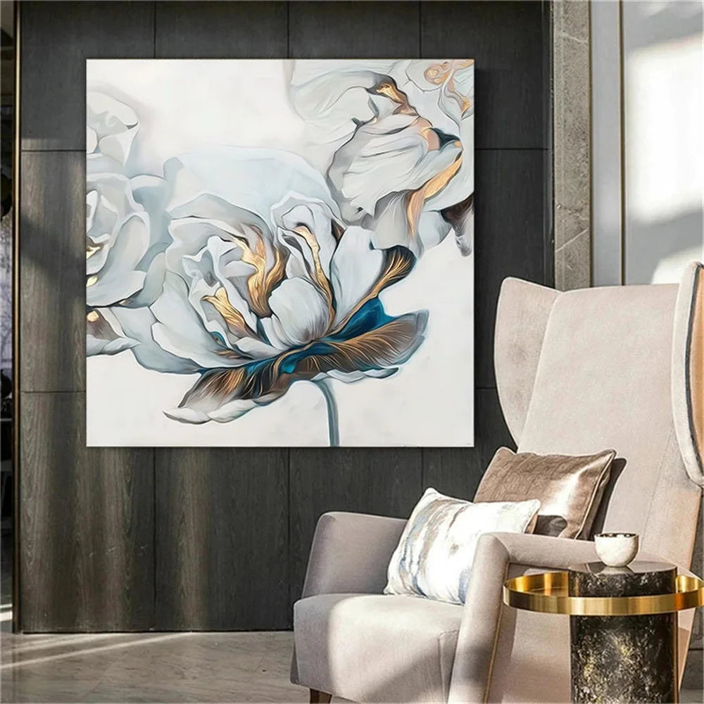 HANDGEZEICHNET The Golden Flower Blue Ölgemälde