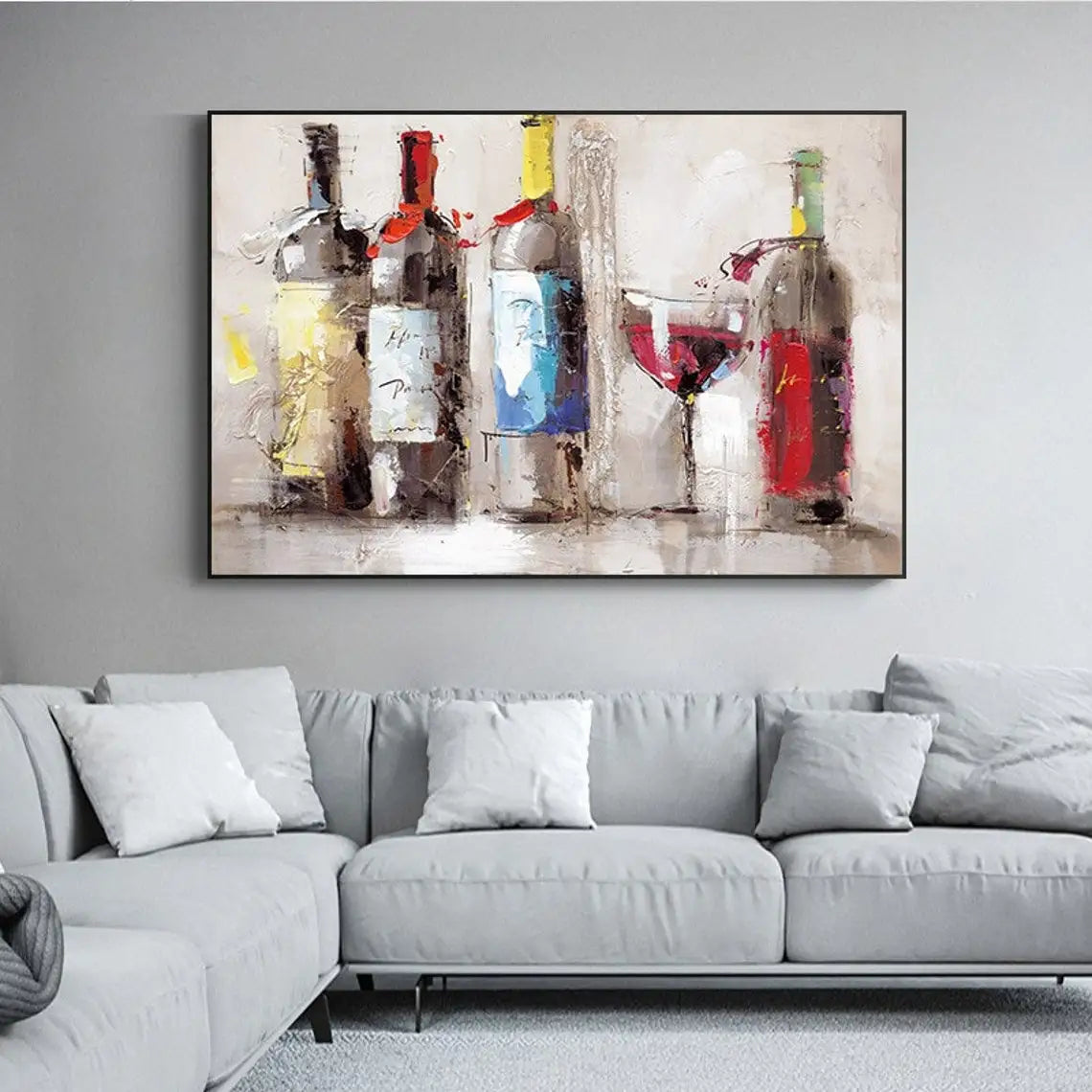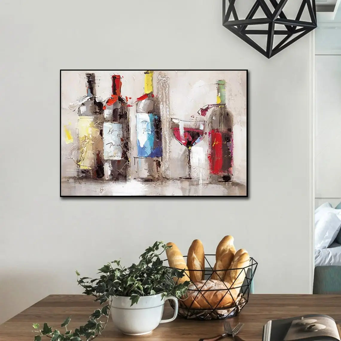 Wein Flaschen Abstrakt Ölgemälde Handmade